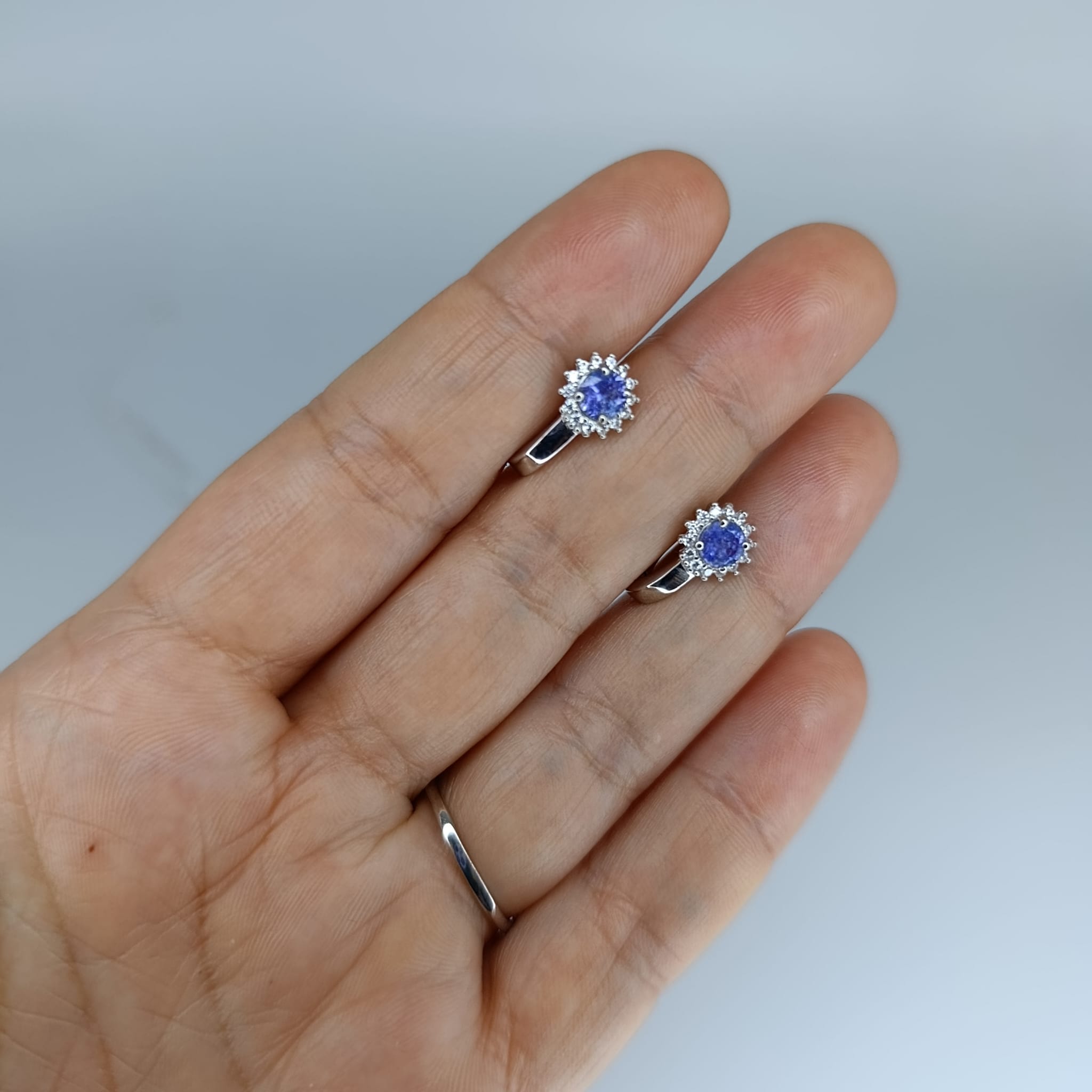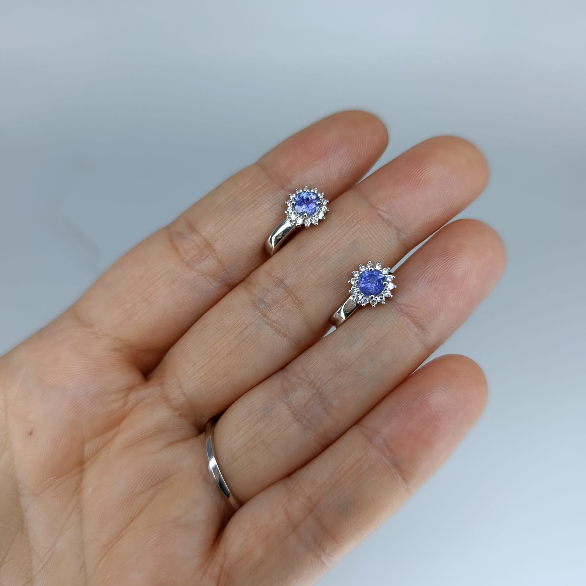 Te kolczyki zostały stworzone z myślą o kobietach, które chcą wyglądać elegancko, ale bez przesady. Centralny tanzanit o średnicy 5 mm przyciąga uwagę swoją wyjątkową, niebiesko-fioletową barwą, która delikatnie zmienia się w świetle.