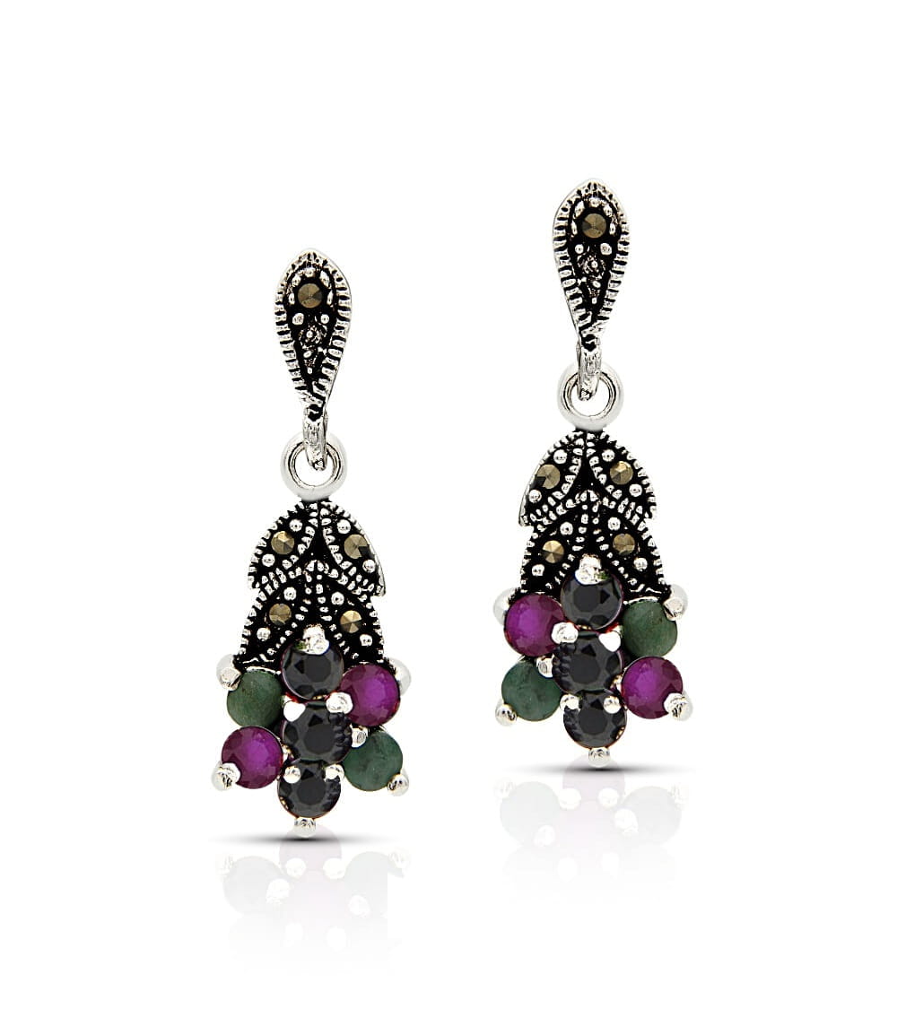 Odkryj ponadczasową elegancję naszych kolczyków z markazytami i kamieniami szlachetnymi – połączenie najwyższej klasy próby srebra oraz wyjątkowych rubinów, szafirów i szmaragdów. Każda para kolczyków została ręcznie wykonana z dbałością o najdrobniejsze detale, a markazyty subtelnie podkreślają blask kolorowych kamieni, tworząc harmonijną, luksusową kompozycję. Dzięki klasycznemu kształtowi w formie zwisających kropli biżuteria doskonale współgra zarówno z wieczorowymi kreacjami, jak i codziennymi stylizacjami, dodając im szyku i wyrafinowania. Idealne na prezent dla ukochanej – te kolczyki stanowią doskonały wybór na rocznicę, urodziny czy wyjątkowe okazje.