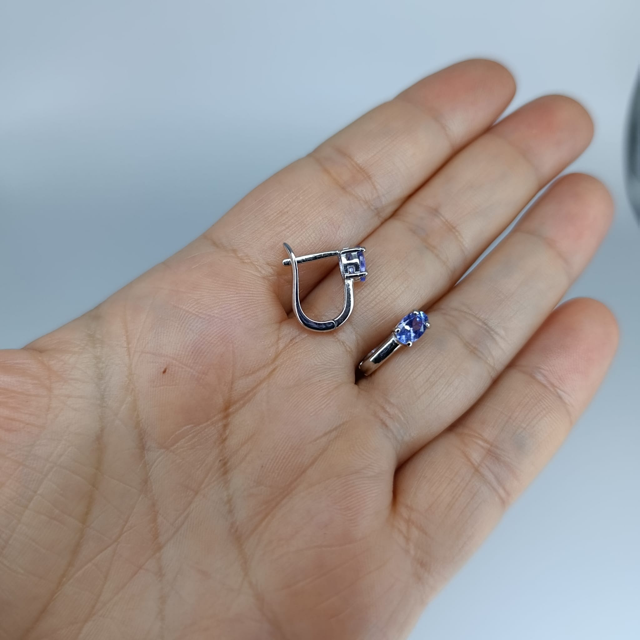 Kolczyki wykonane z rodowanego srebra próby 925 oraz naturalnych tanzanitów