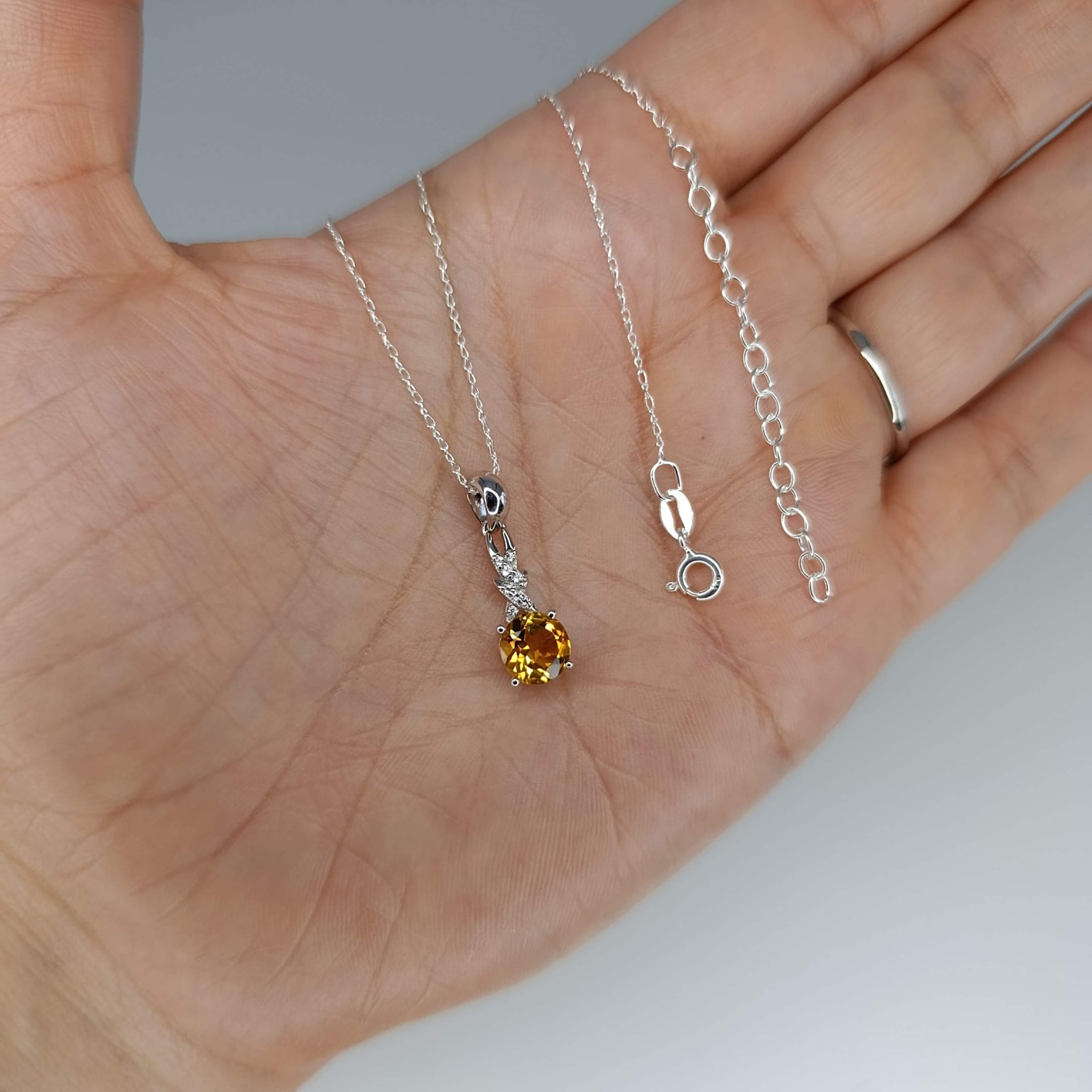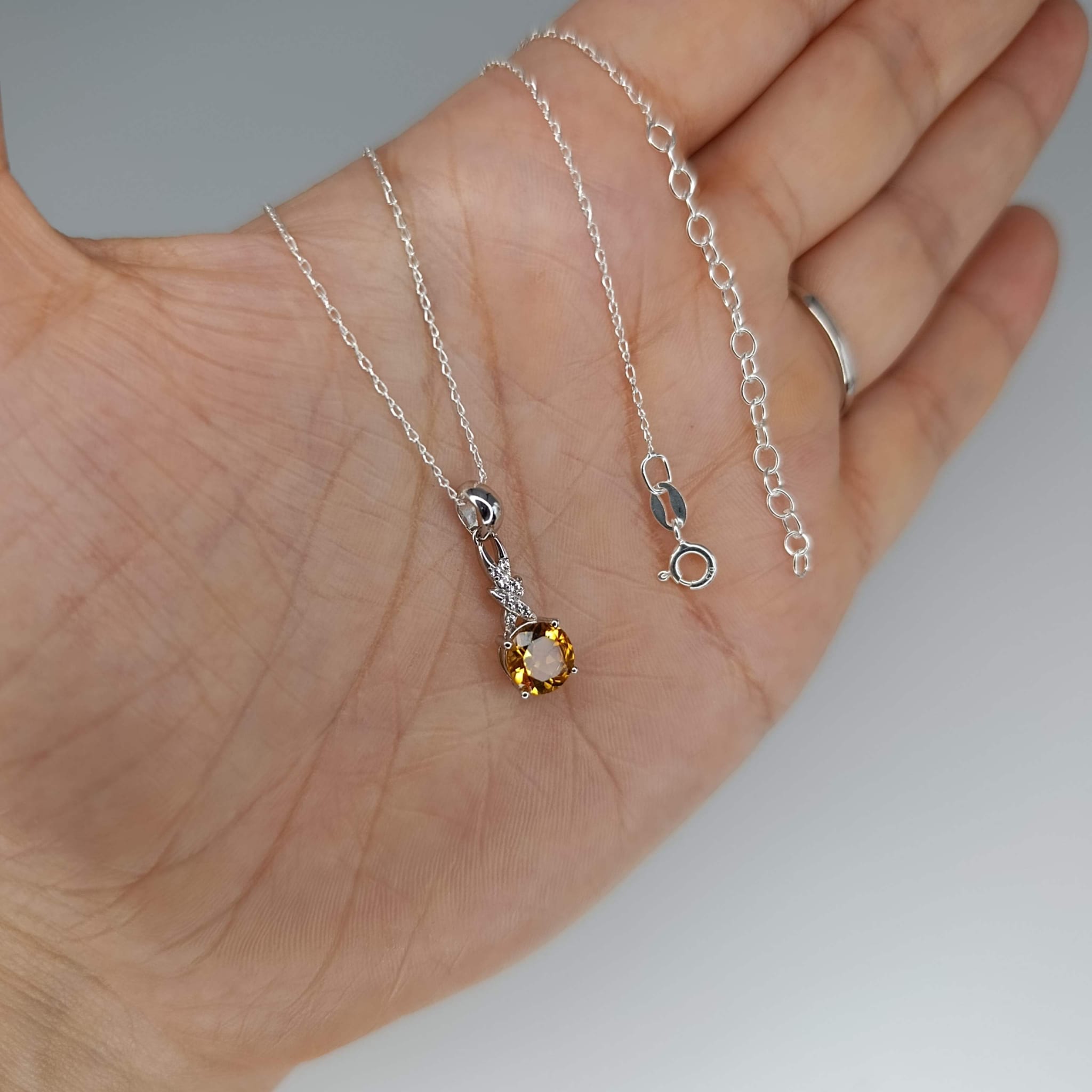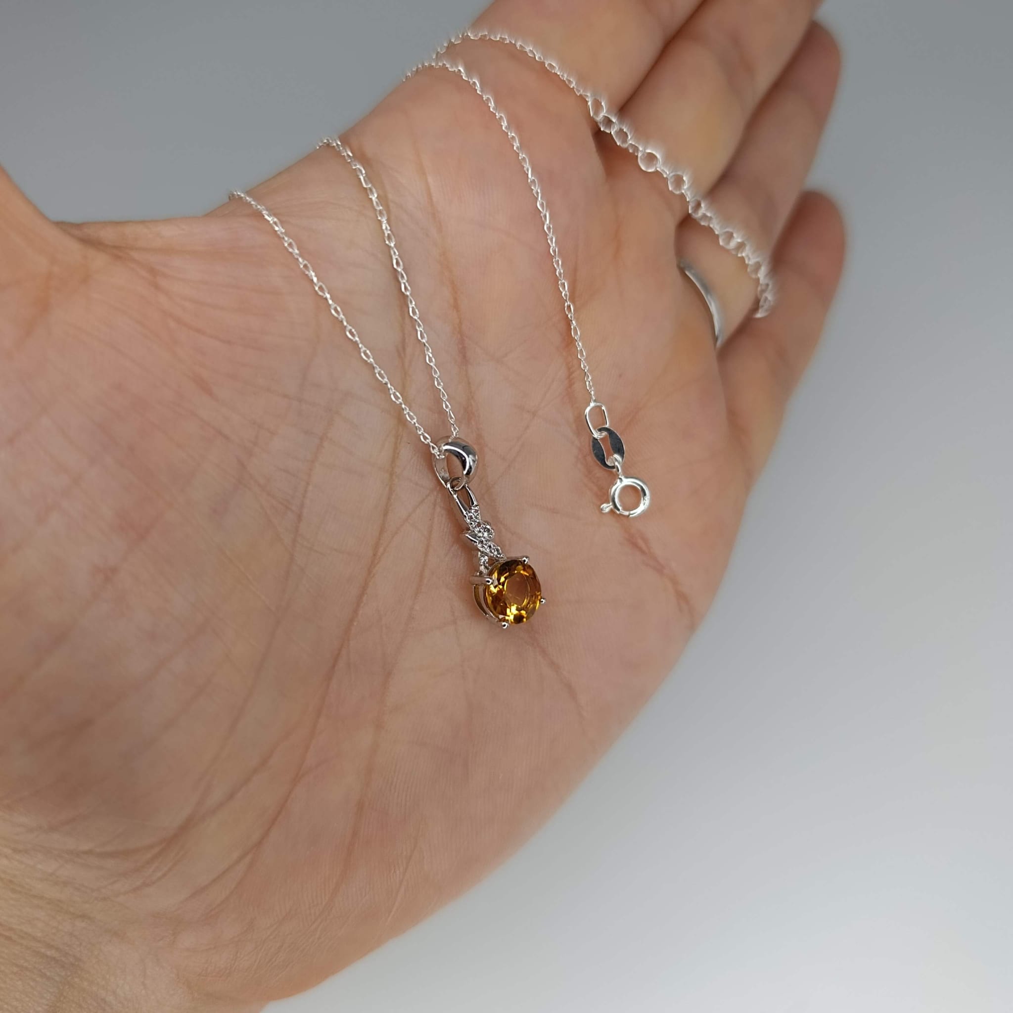Naszyjnik „Blask Słońca” to biżuteria, która nie potrzebuje wielkich okazji, by zachwycać. Naturalny cytryn 7 mm w eleganckiej, rodowanej oprawie tworzy kompozycję, która dodaje świeżości i ciepła każdej stylizacji — od codziennych po wieczorowe.