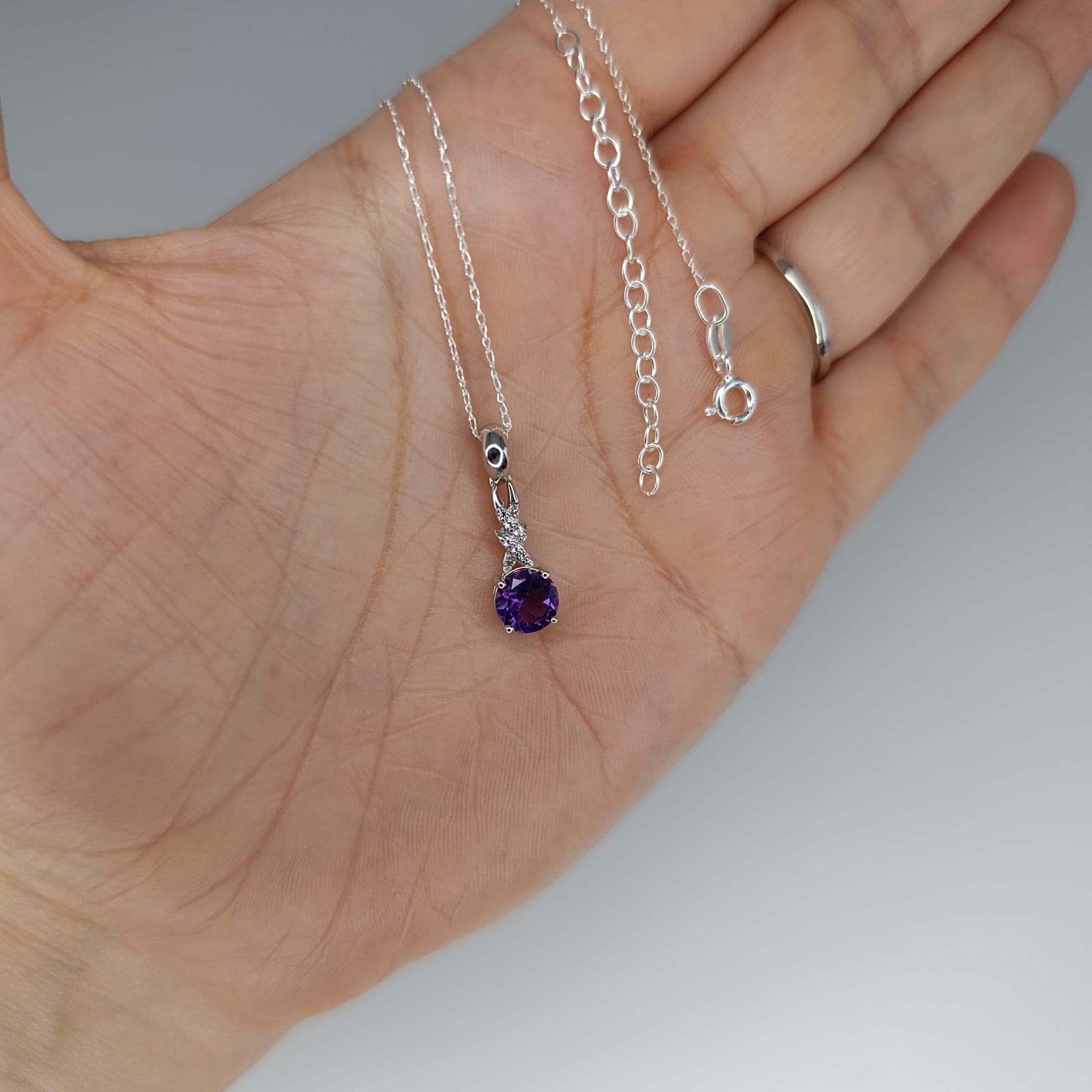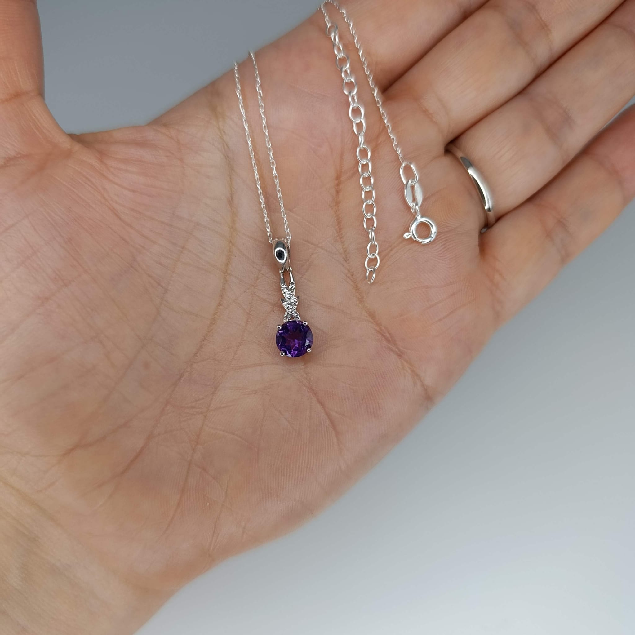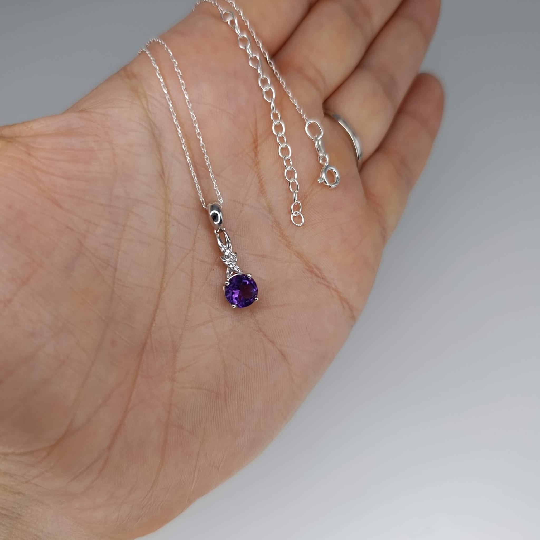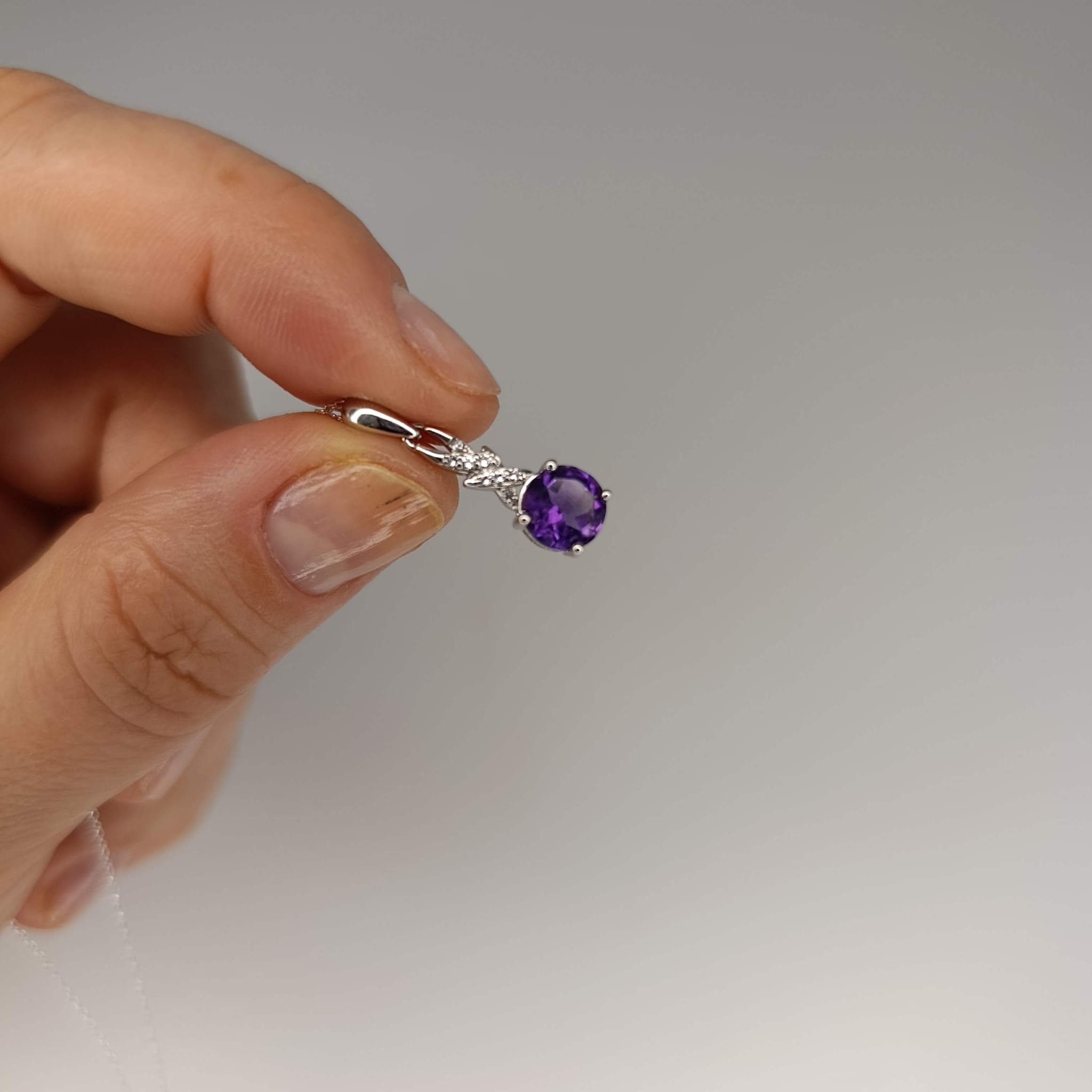 Naszyjnik „Fioletowa Aura” to propozycja dla kobiet, które lubią biżuterię z charakterem. Naturalny ametyst 7 mm w rodowanej oprawie tworzy kompozycję, która przyciąga spojrzenia, ale robi to w sposób subtelny i elegancki.