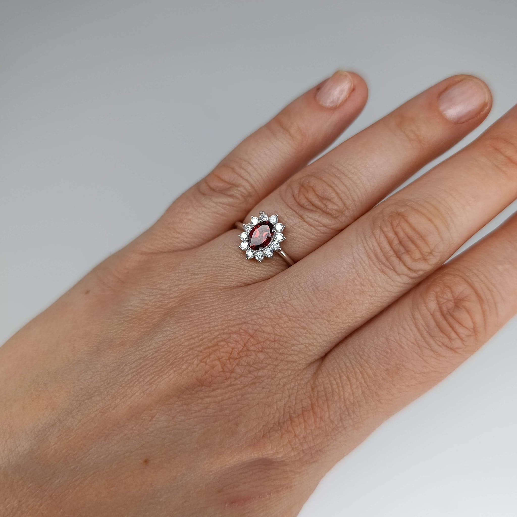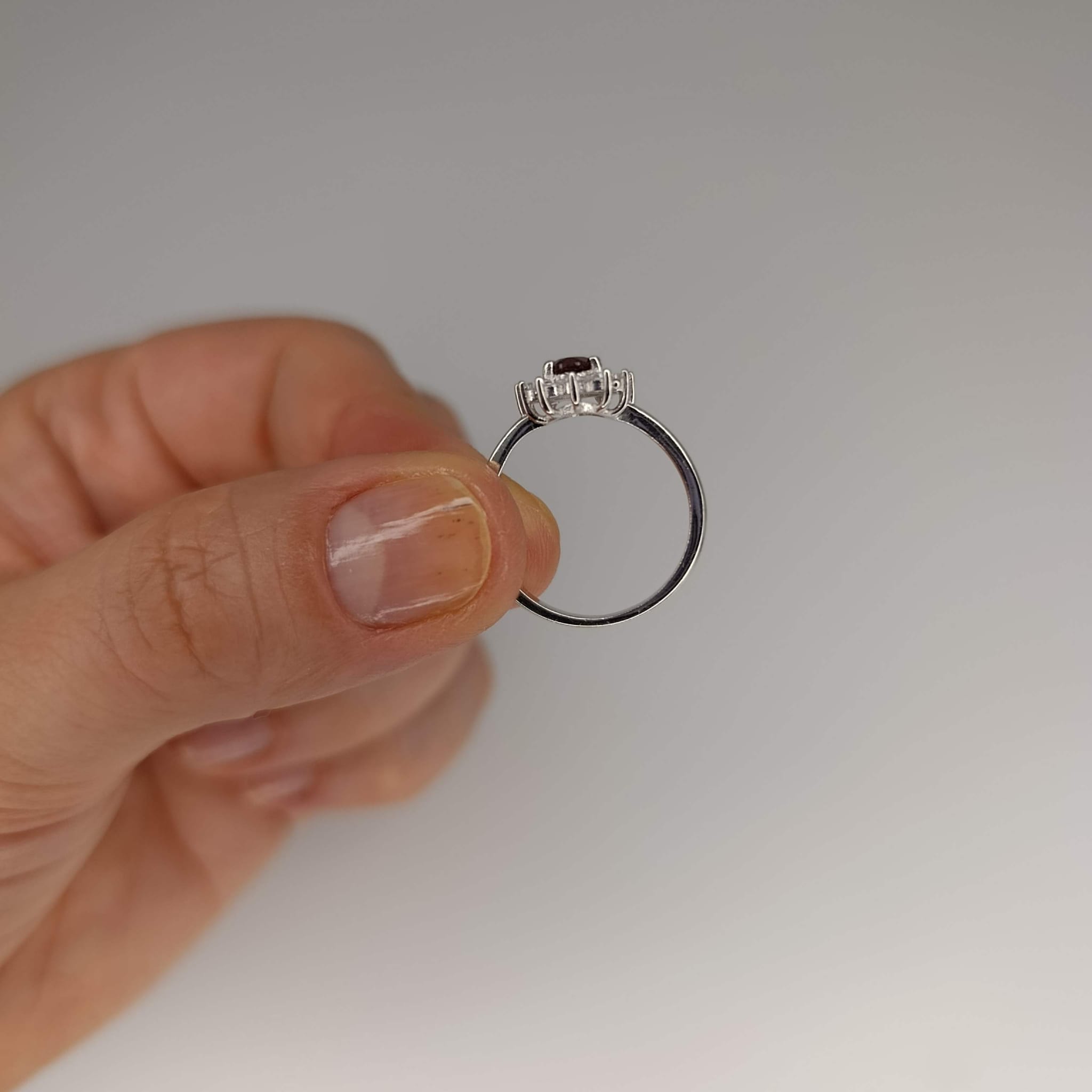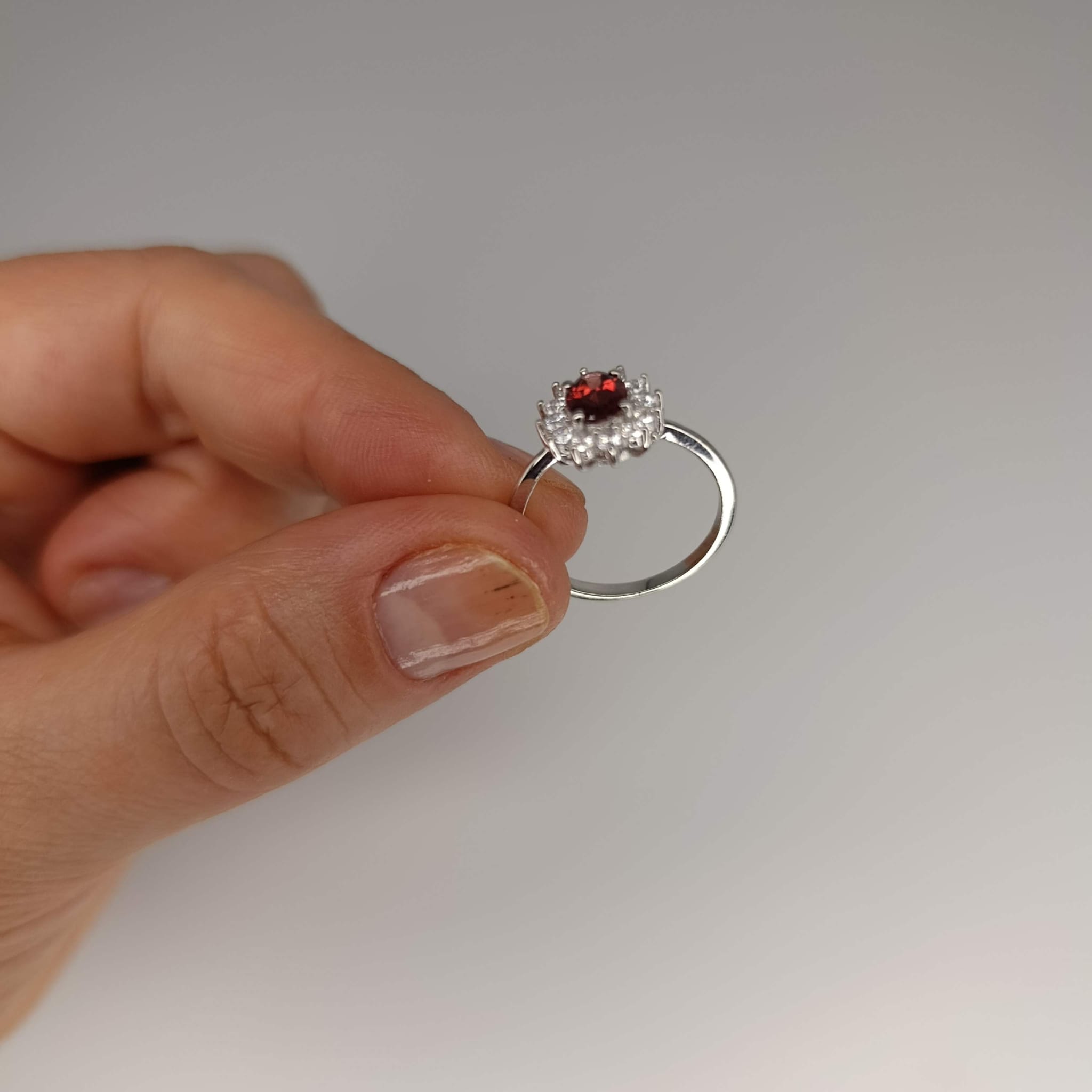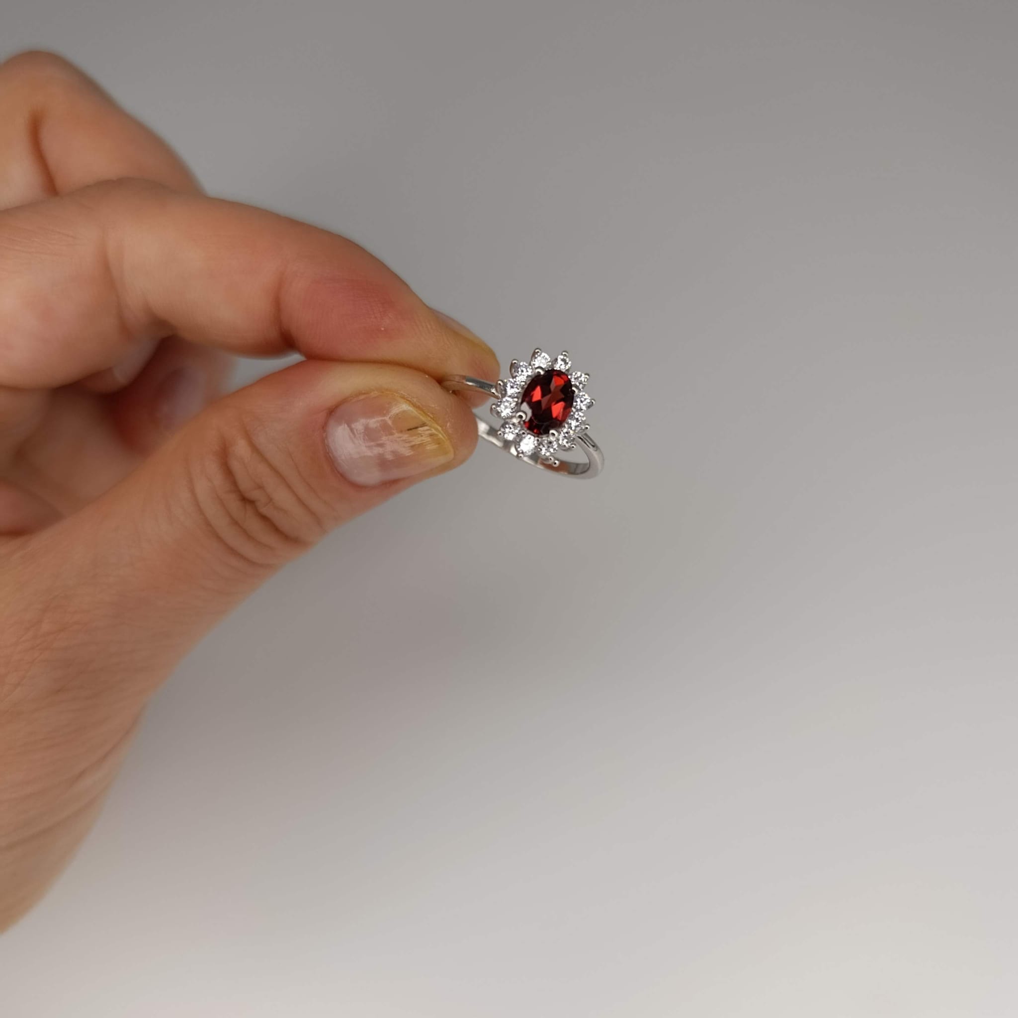 Pierścionek „Ognista Obietnica” to kwintesencja kobiecej elegancji. Wyjątkowy, naturalny granat o głębokiej, bordowej barwie, otoczony blaskiem cyrkonii, tworzy aurę luksusu, której nie sposób się oprzeć. Wykonany z rodowanego srebra próby 925, stanowi trwały symbol piękna, który nie straci swojego blasku przez lata. Do każdego pierścionka dołączamy certyfikat autentyczności, a darmowa wysyłka sprawia, że zakupy u nas są czystą przyjemnością. To biżuteria o ograniczonym nakładzie – jeśli szukasz prezentu, który skradnie serce, to jest to idealny wybór. Nie czekaj, pozwól sobie na ten luksus.