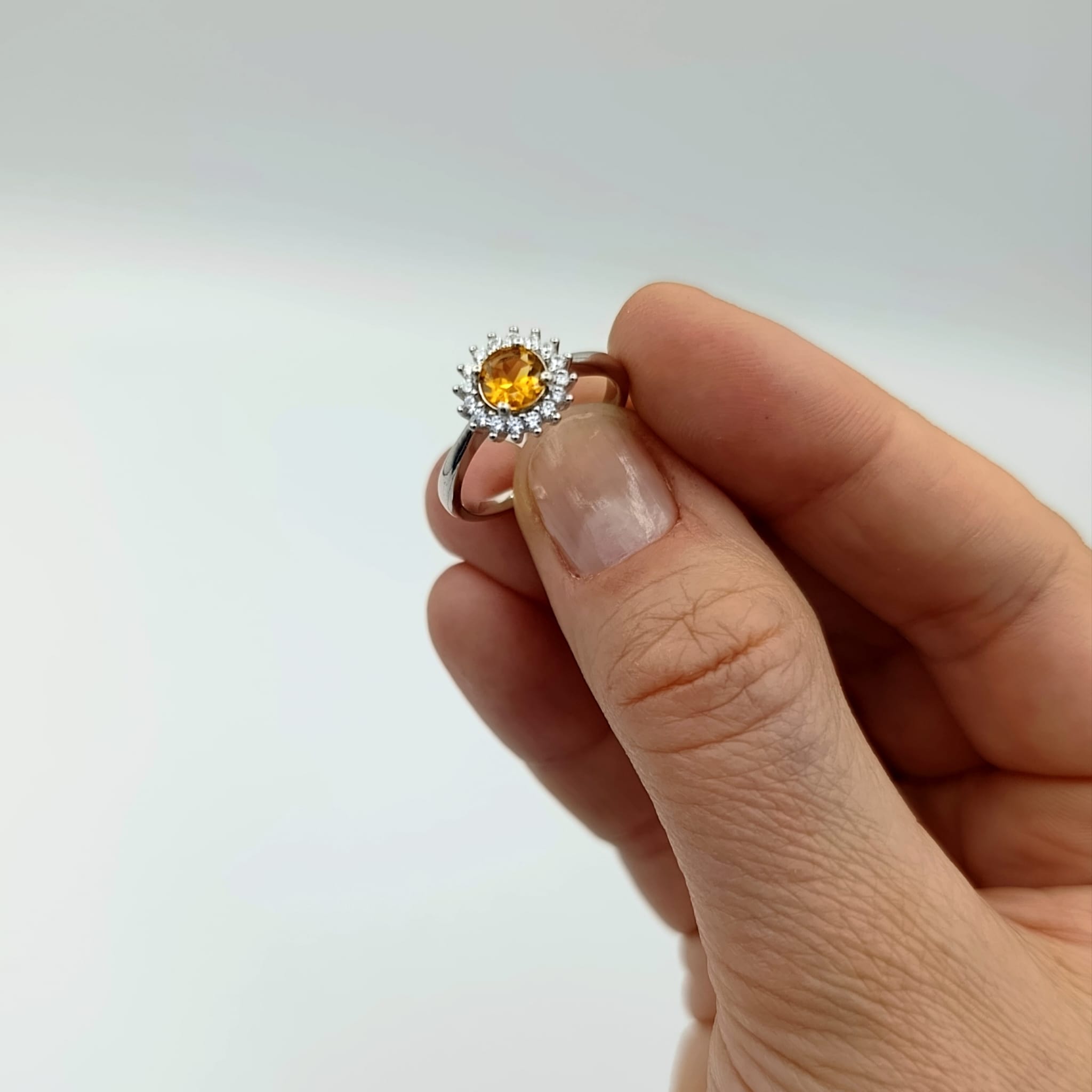 Pierścionek srebrny z cytrynem i cyrkoniami 925