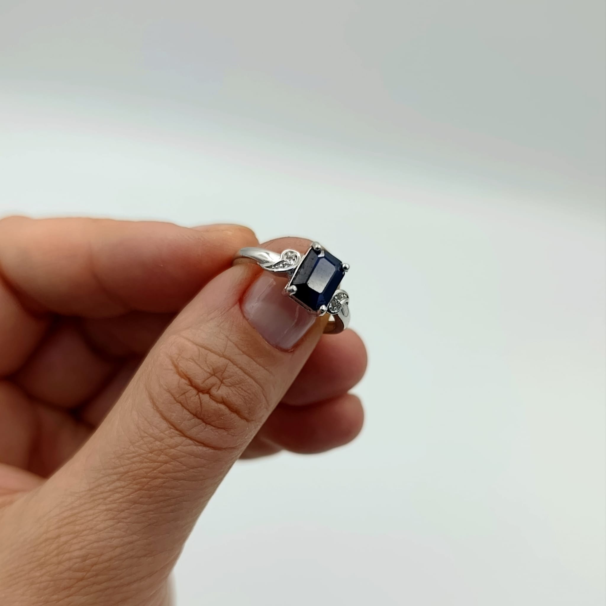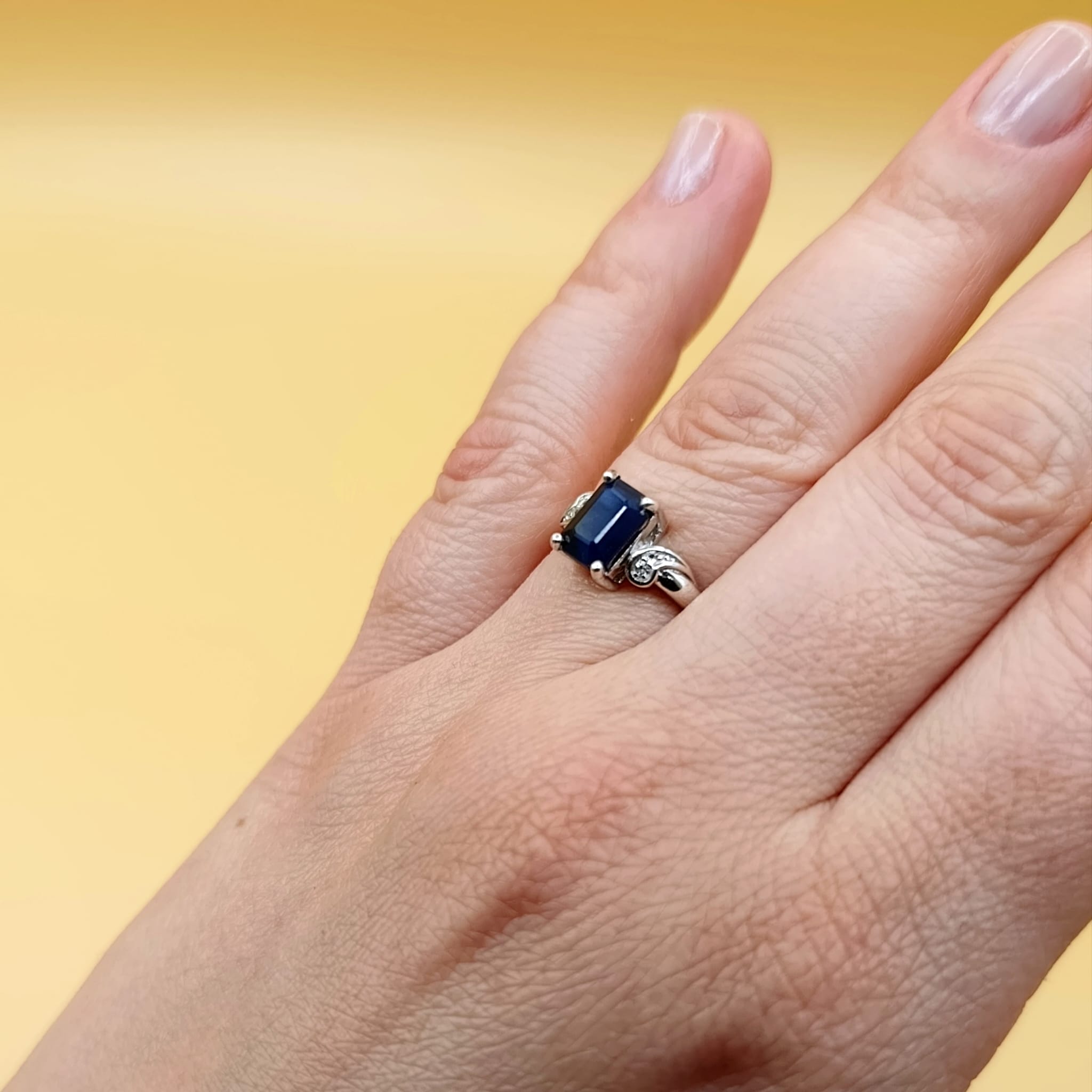 Wyważona elegancja na co dzień i od święta — pierścionek Perlei z naturalnym szafirem to dodatek, który podkreśli klasę bez przesady. Prostokątny, fasetowany szafir 8×6 mm został osadzony w rodowanym srebrze próby 925; jego klarowność i chłodniejsza tonacja świetnie współgrają z gładką obrączką pierścionka.