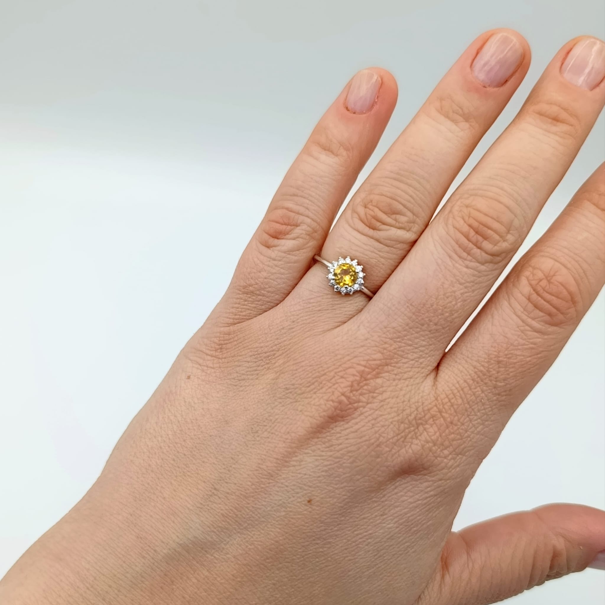 Pierścionek srebrny z naturalnym cytrynem 5 mm i cyrkoniami – srebro 925 rodowane