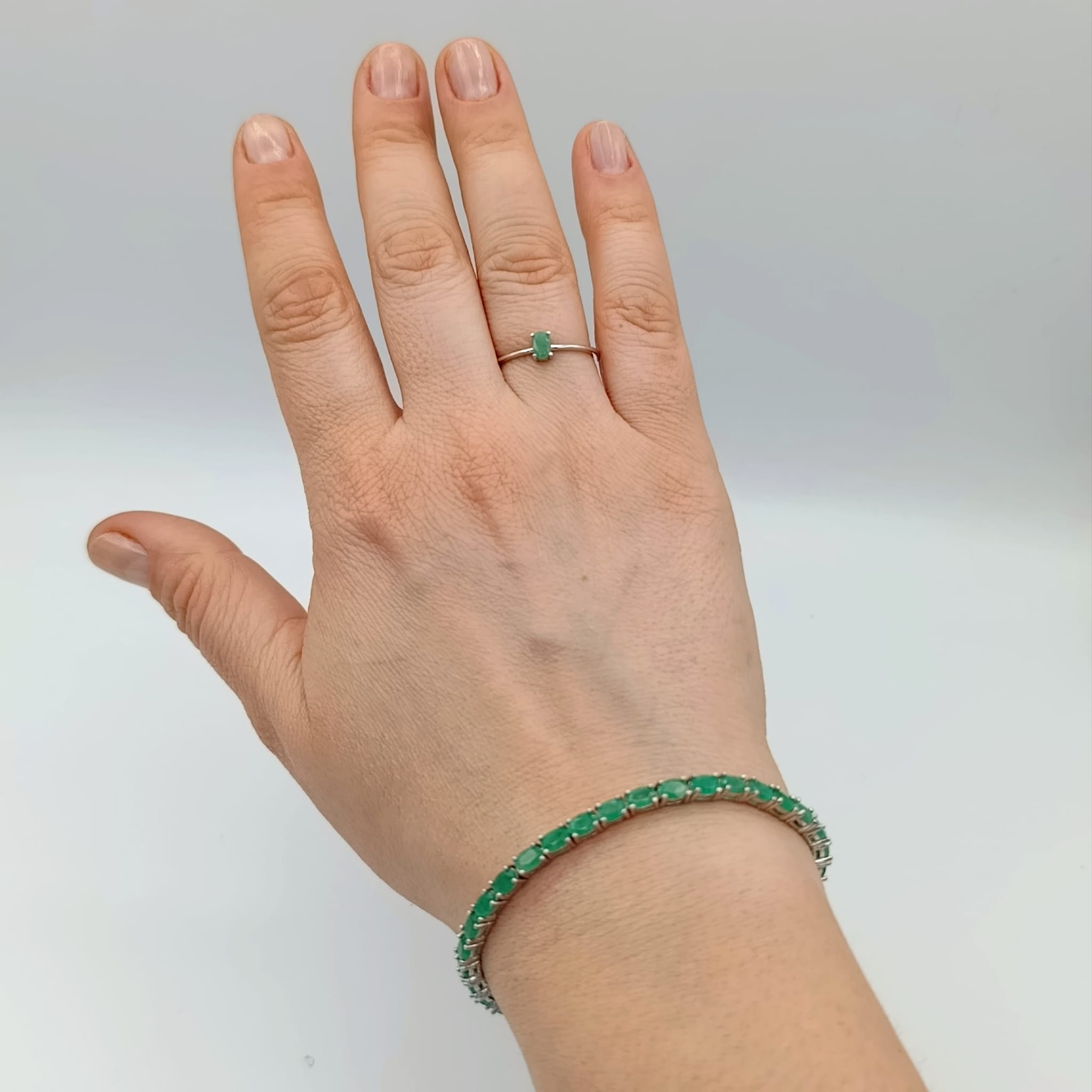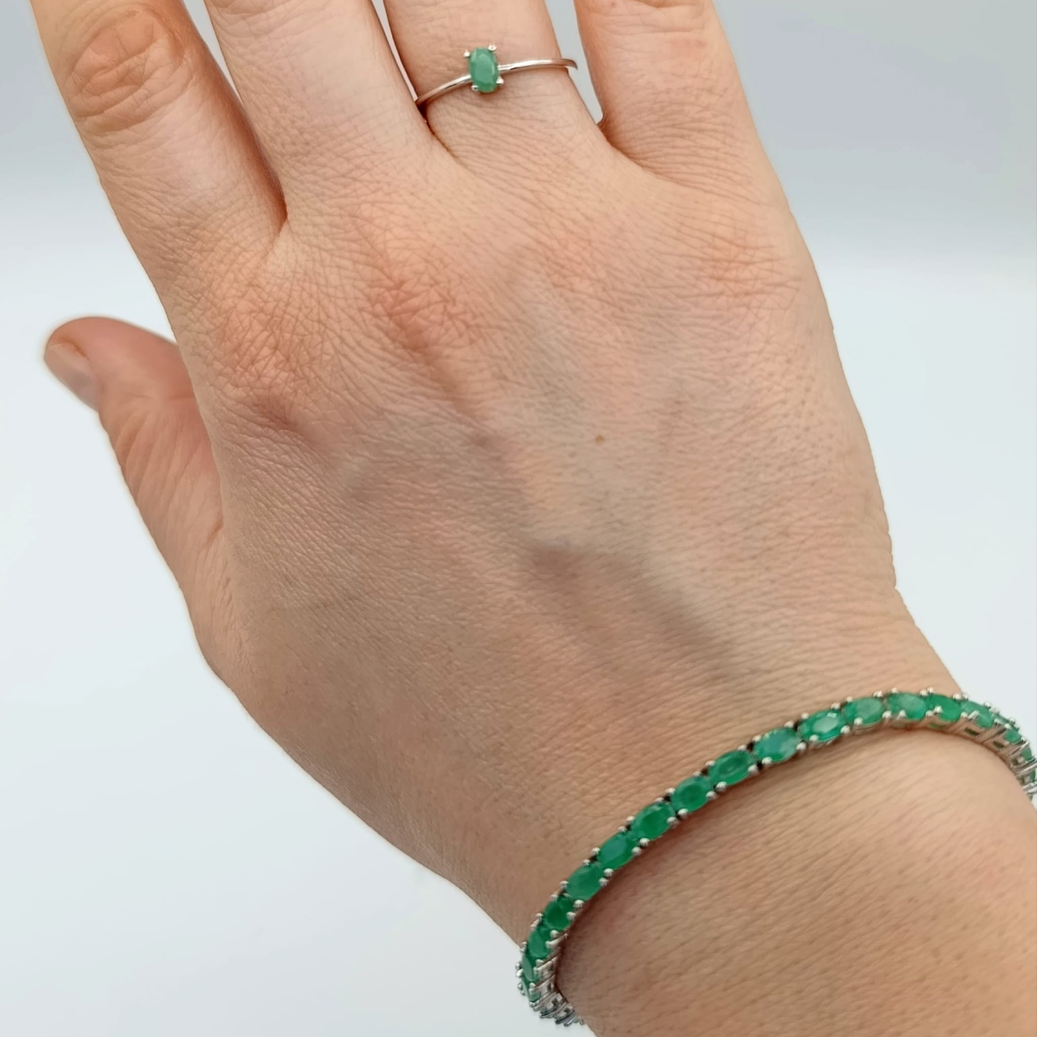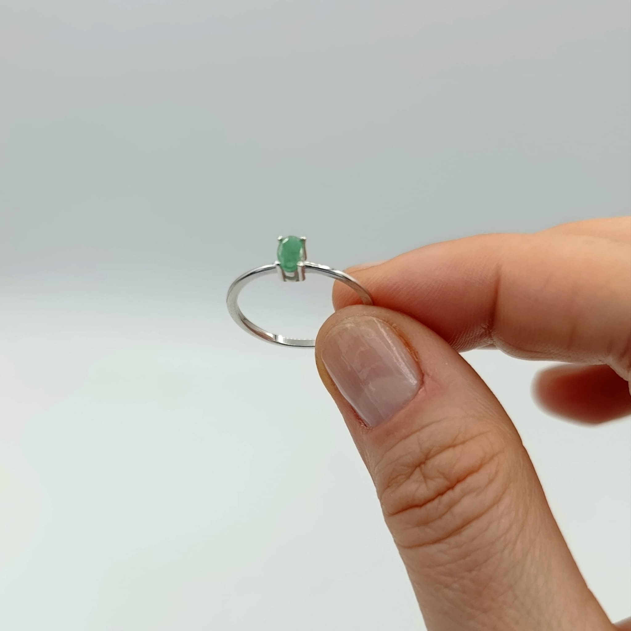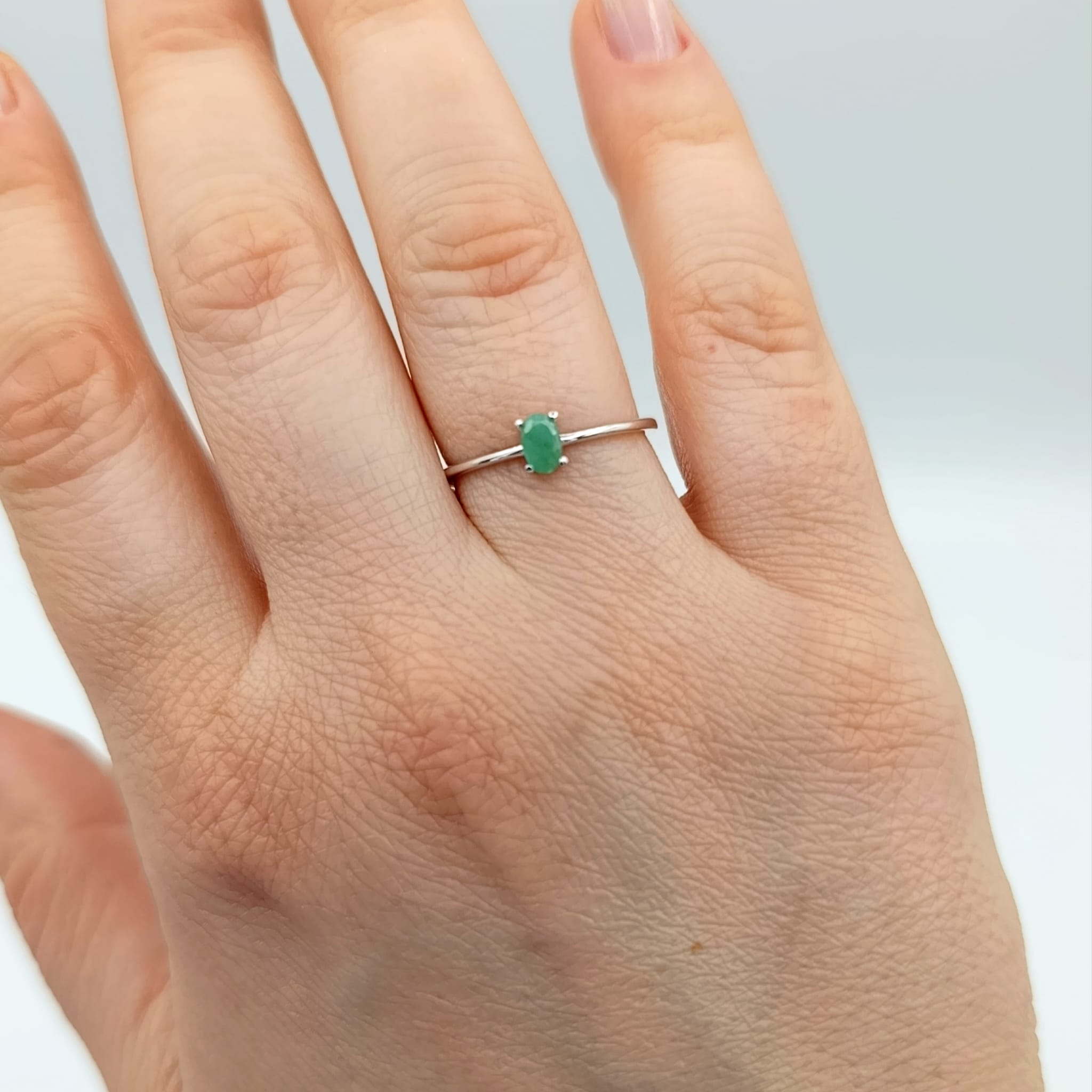Delikatny pierścionek z naturalnym szmaragdem osadzonym w srebrze próby 925 to połączenie subtelnej kobiecości z uniwersalną elegancją. Owalny szmaragd o intensywnej, głębokiej zieleni został osadzony w czterech łapkach, co pozwala w pełni eksponować jego naturalny blask i doskonałą jakość.