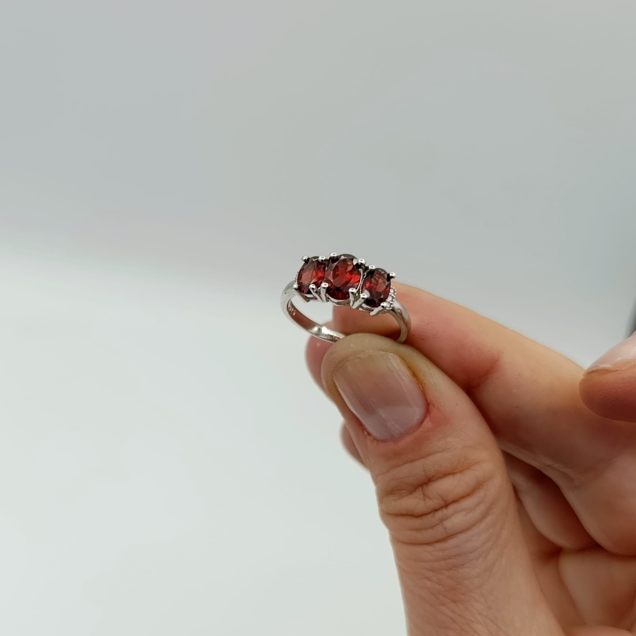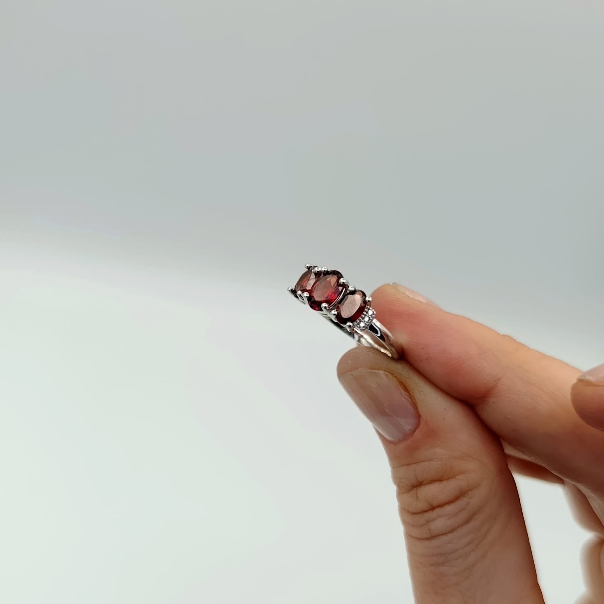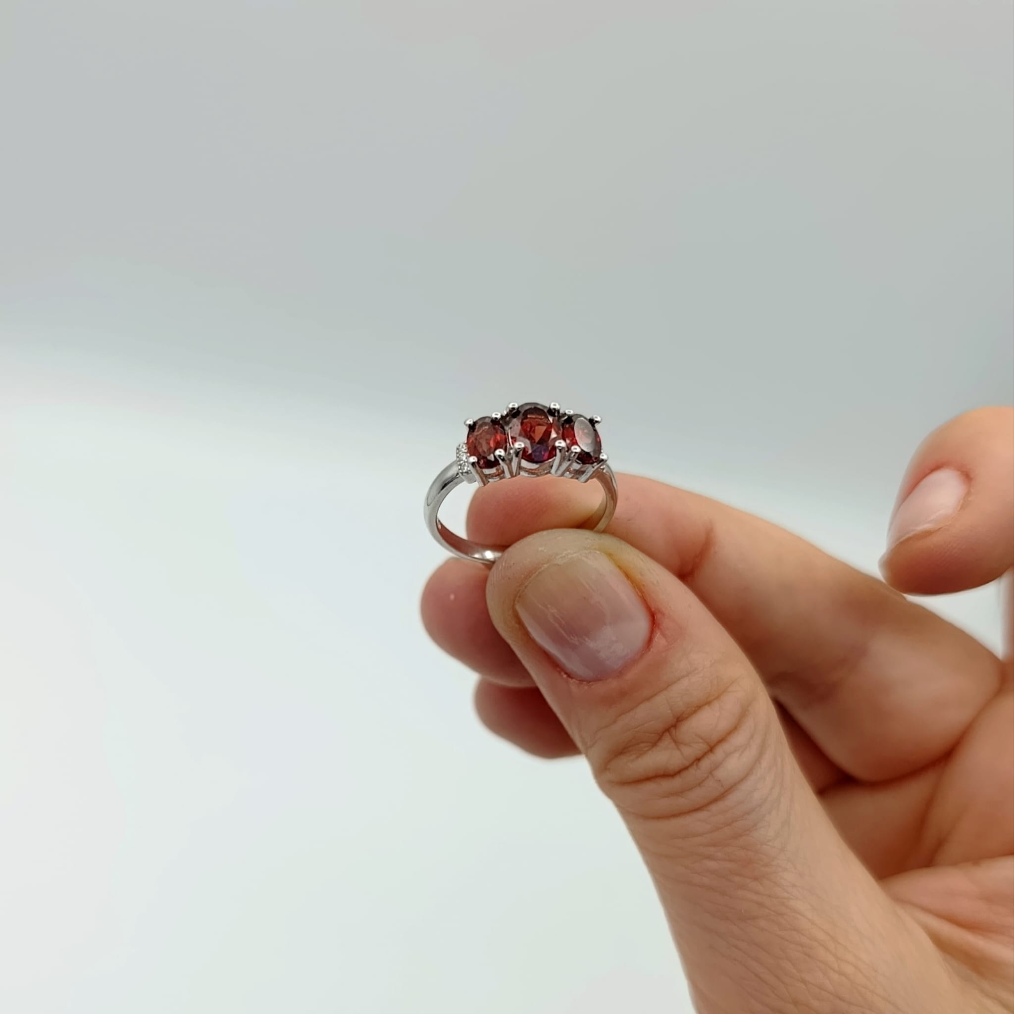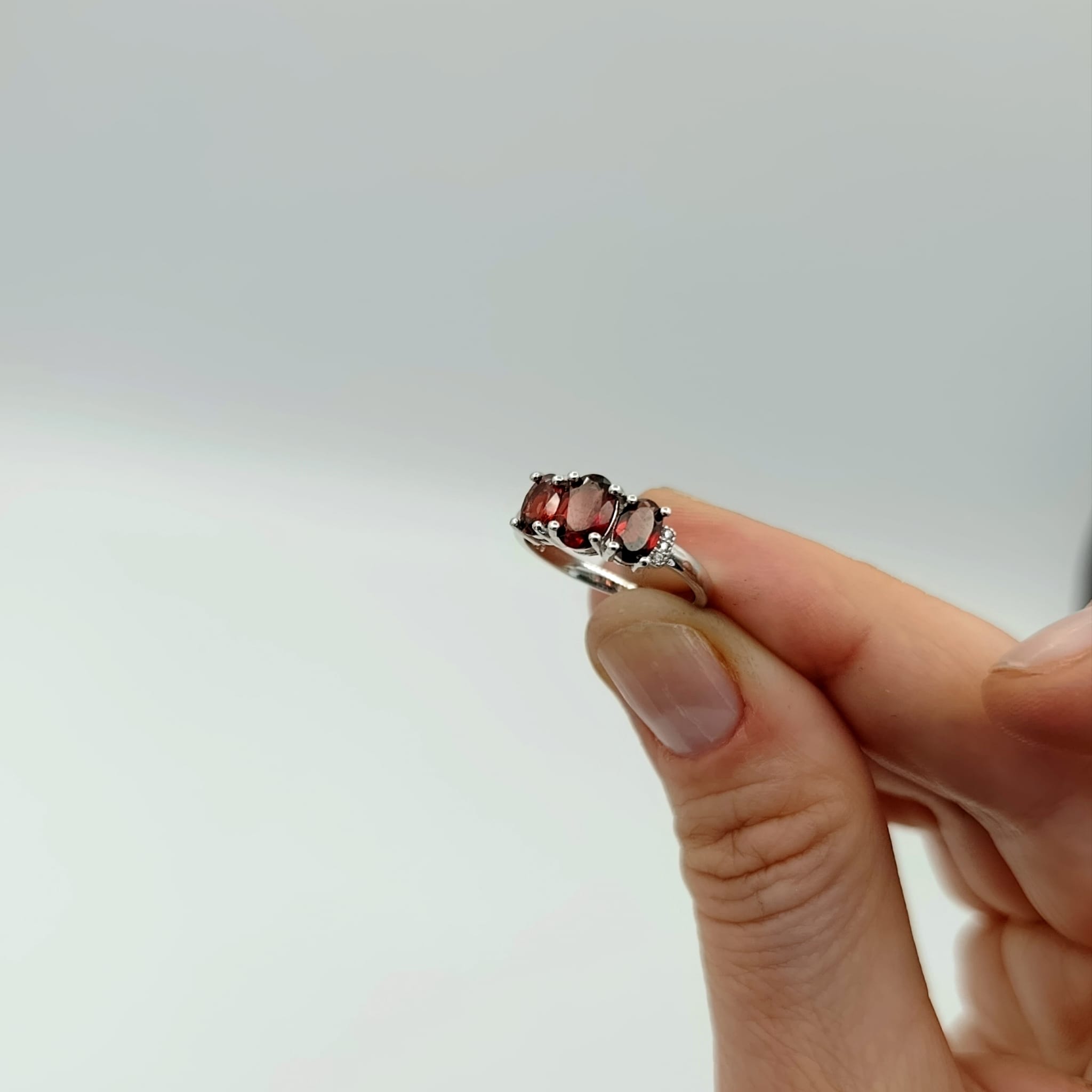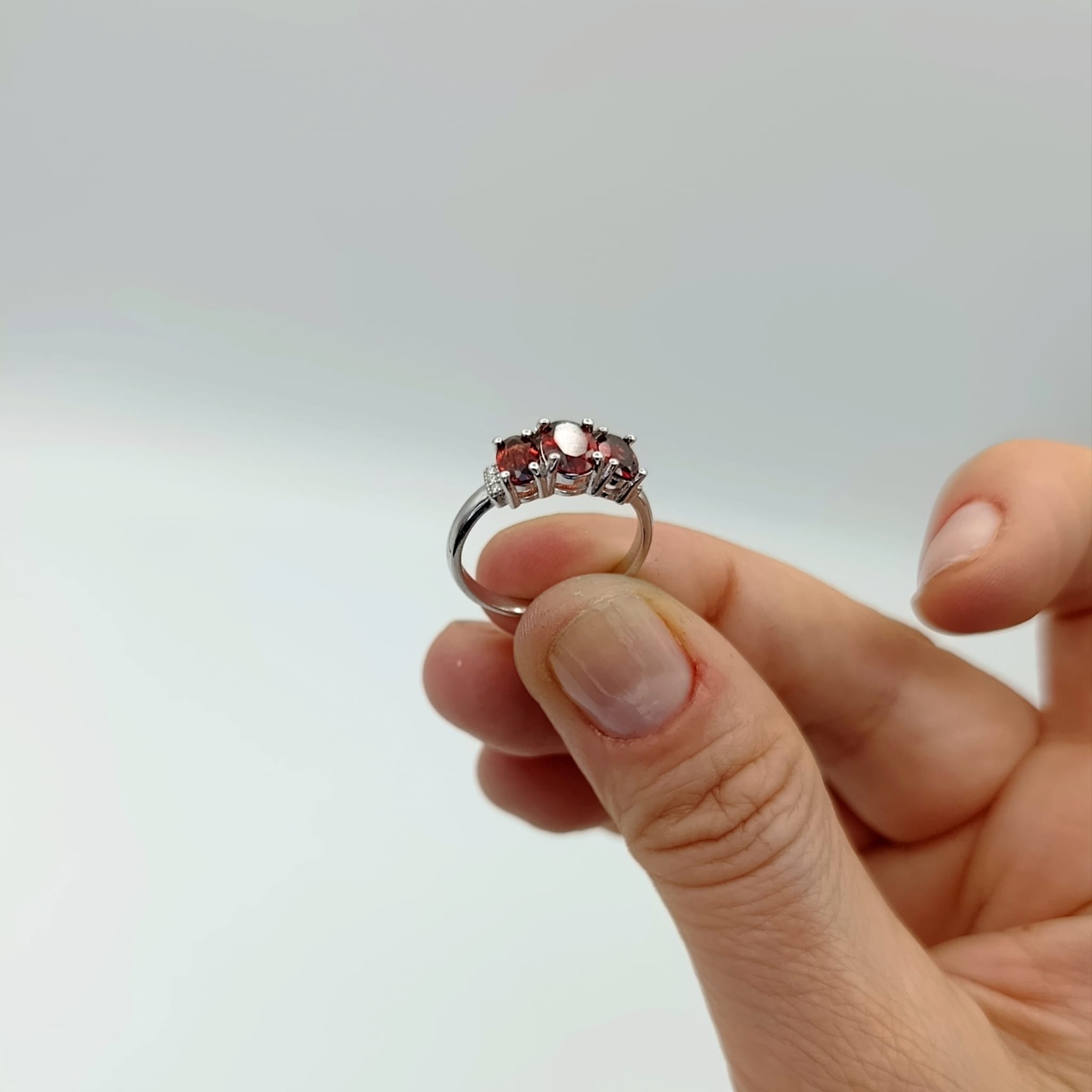 Pierścionek srebrny z trzema naturalnymi granatami