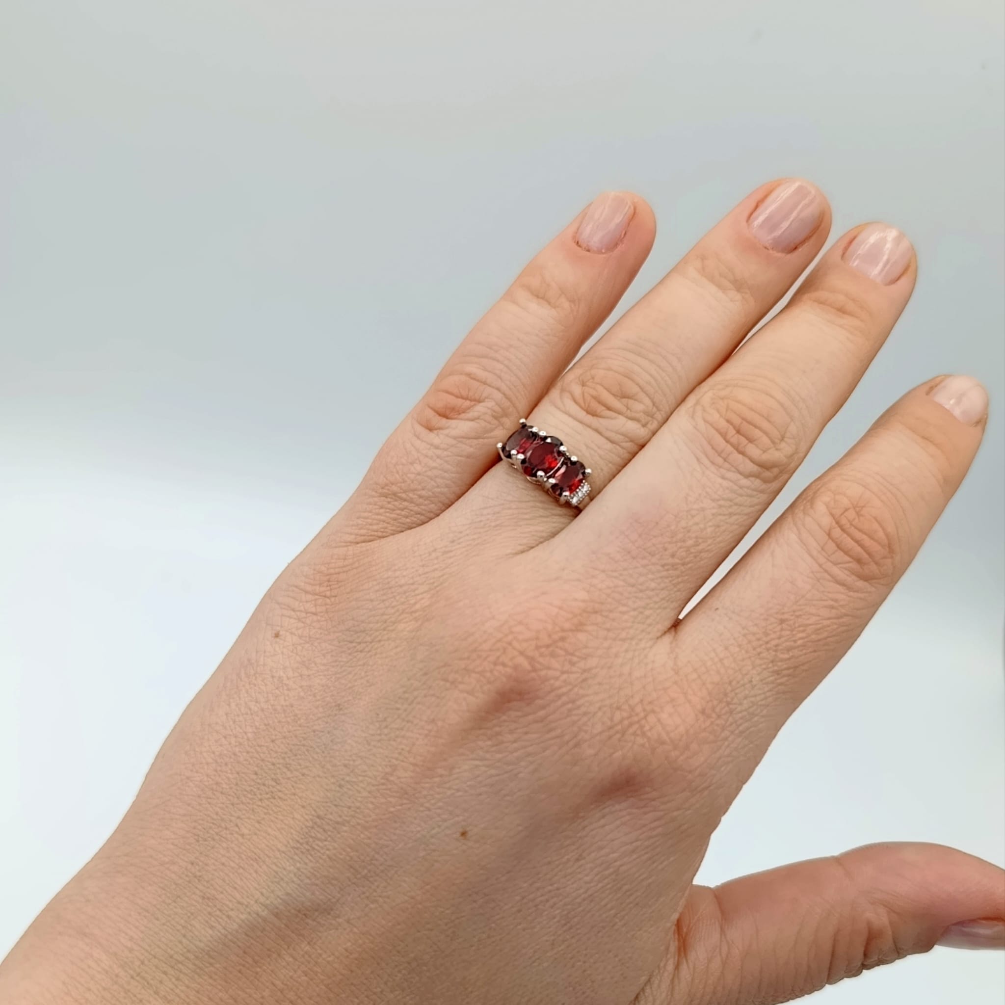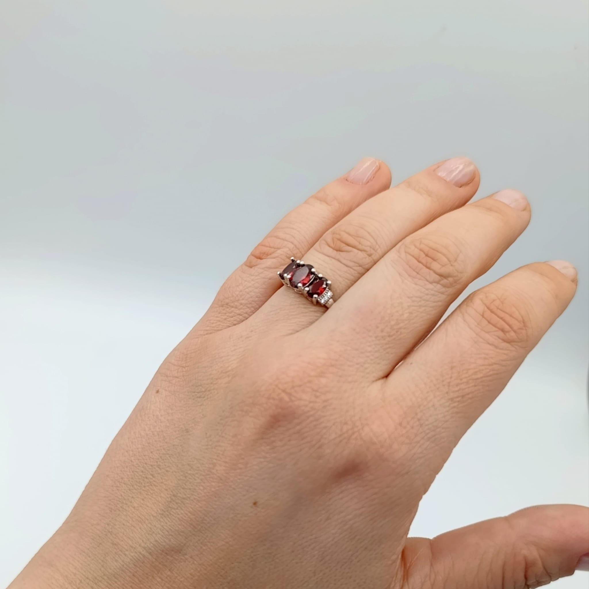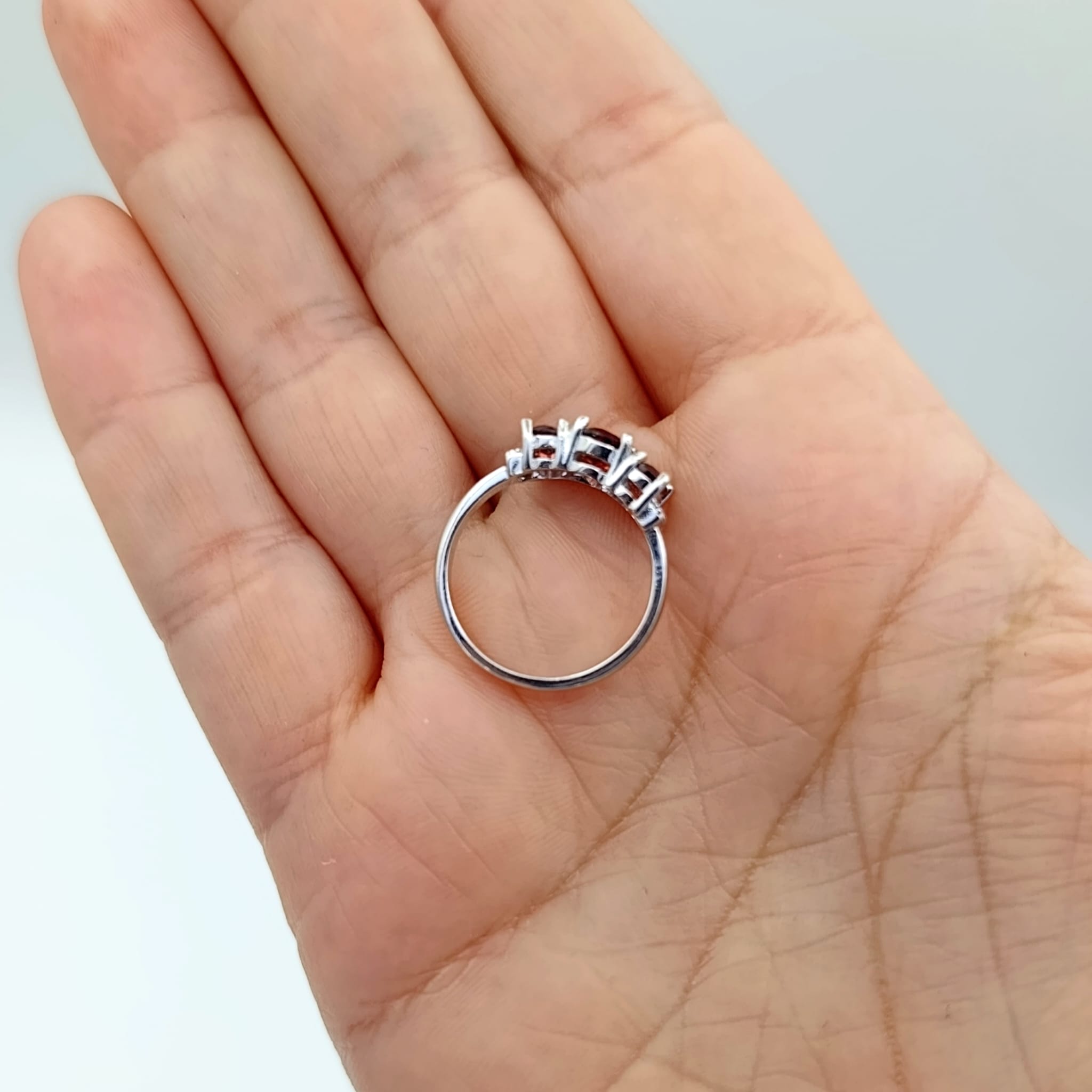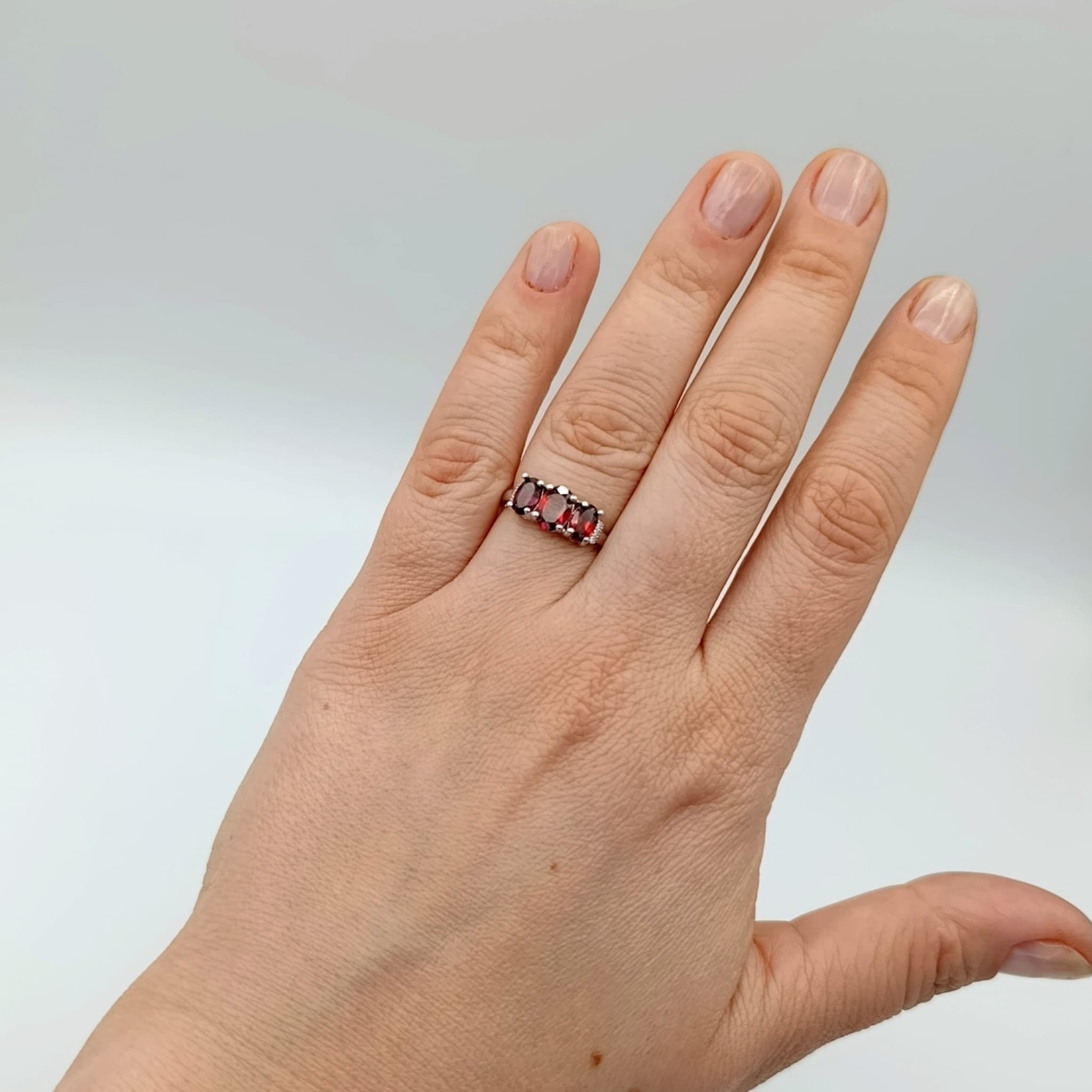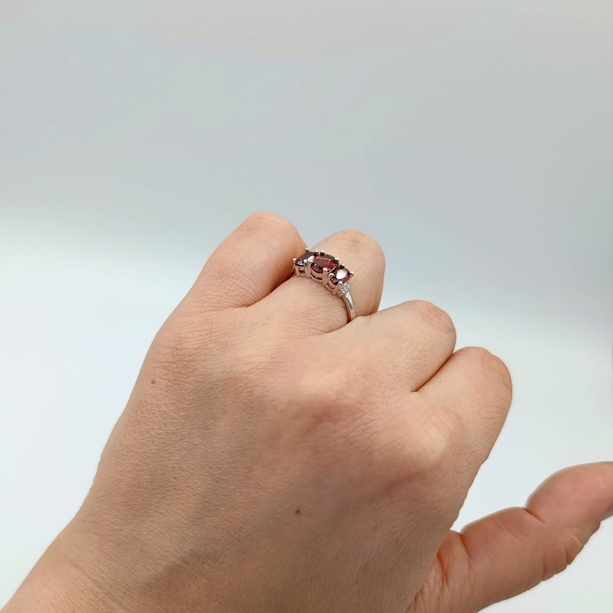 Pierścionek srebrny z trzema naturalnymi granatami