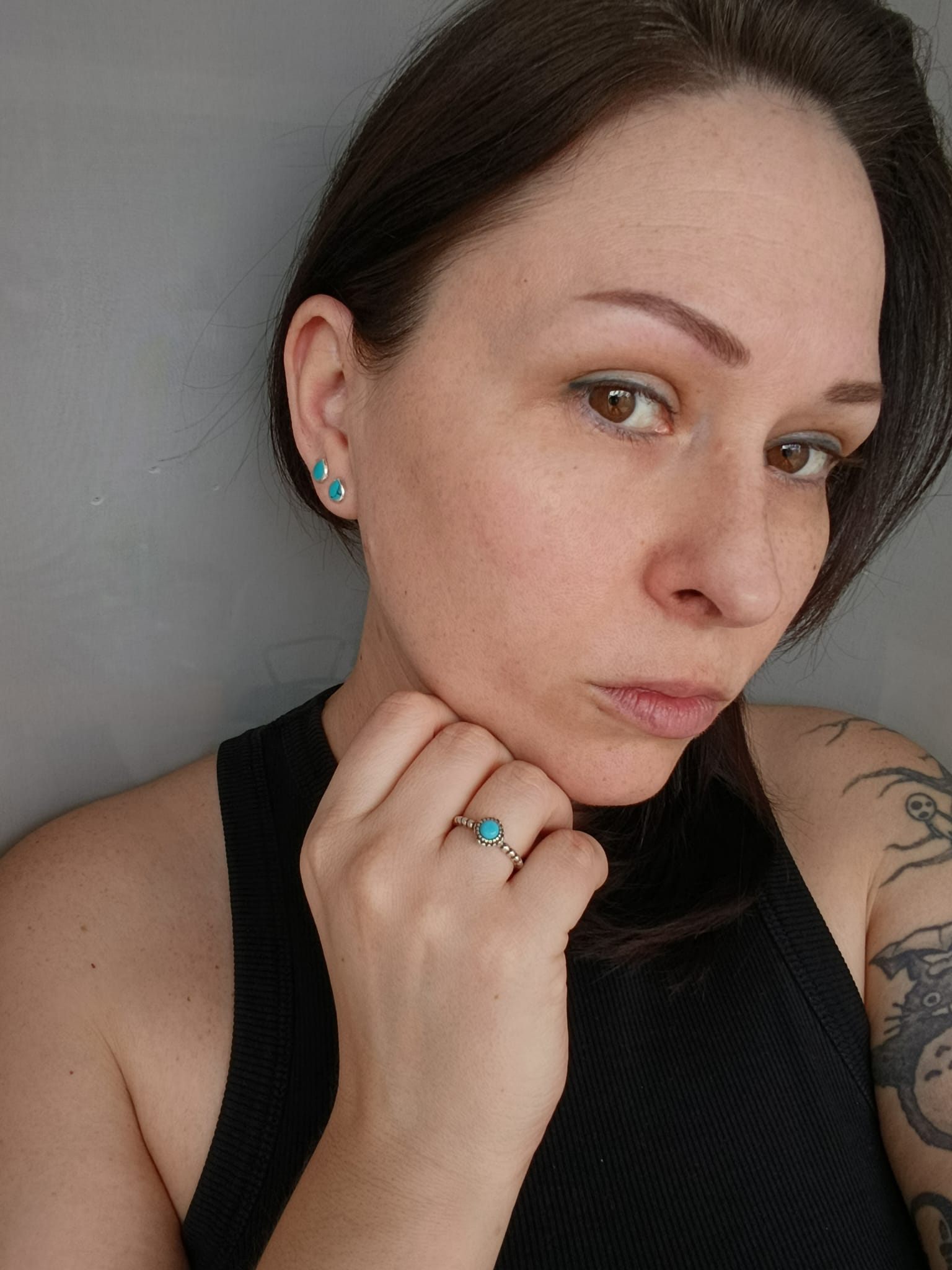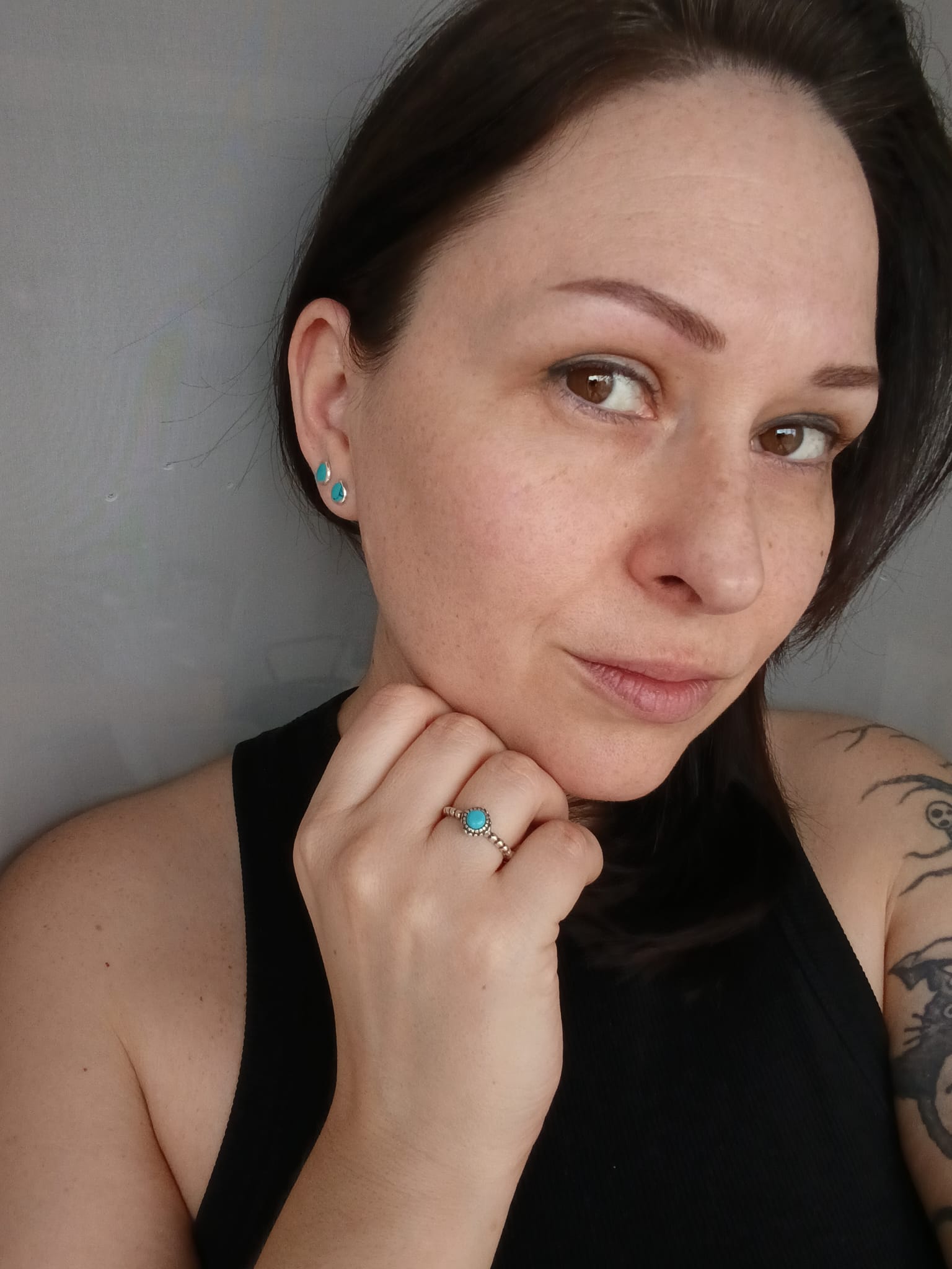 Tajemniczego charakteru dodaje mu oksyda, znajdująca się w zagłębieniach pomiędzy wystającymi elementami pierścionka. Został on bowiem najpierw w całości poddany procesowi oksydowania a następnie wypolerowany tak, aby oksyda została tylko w przerwach między wystającymi elementami obrączki i korony. Te działania sprawiły, że ten regulowany oksydowany srebrny pierścionek z turkusem jest naprawdę wyjątkowy.