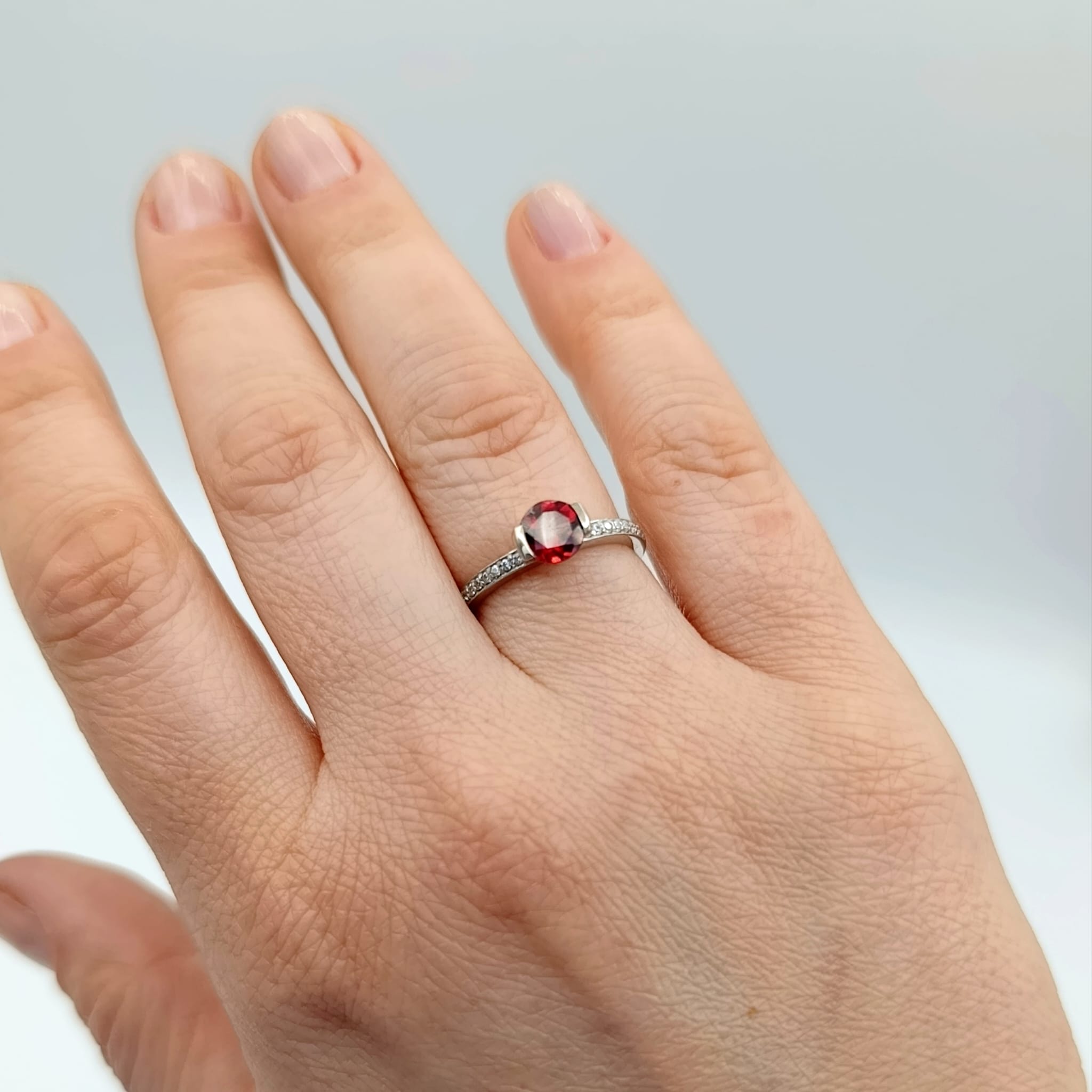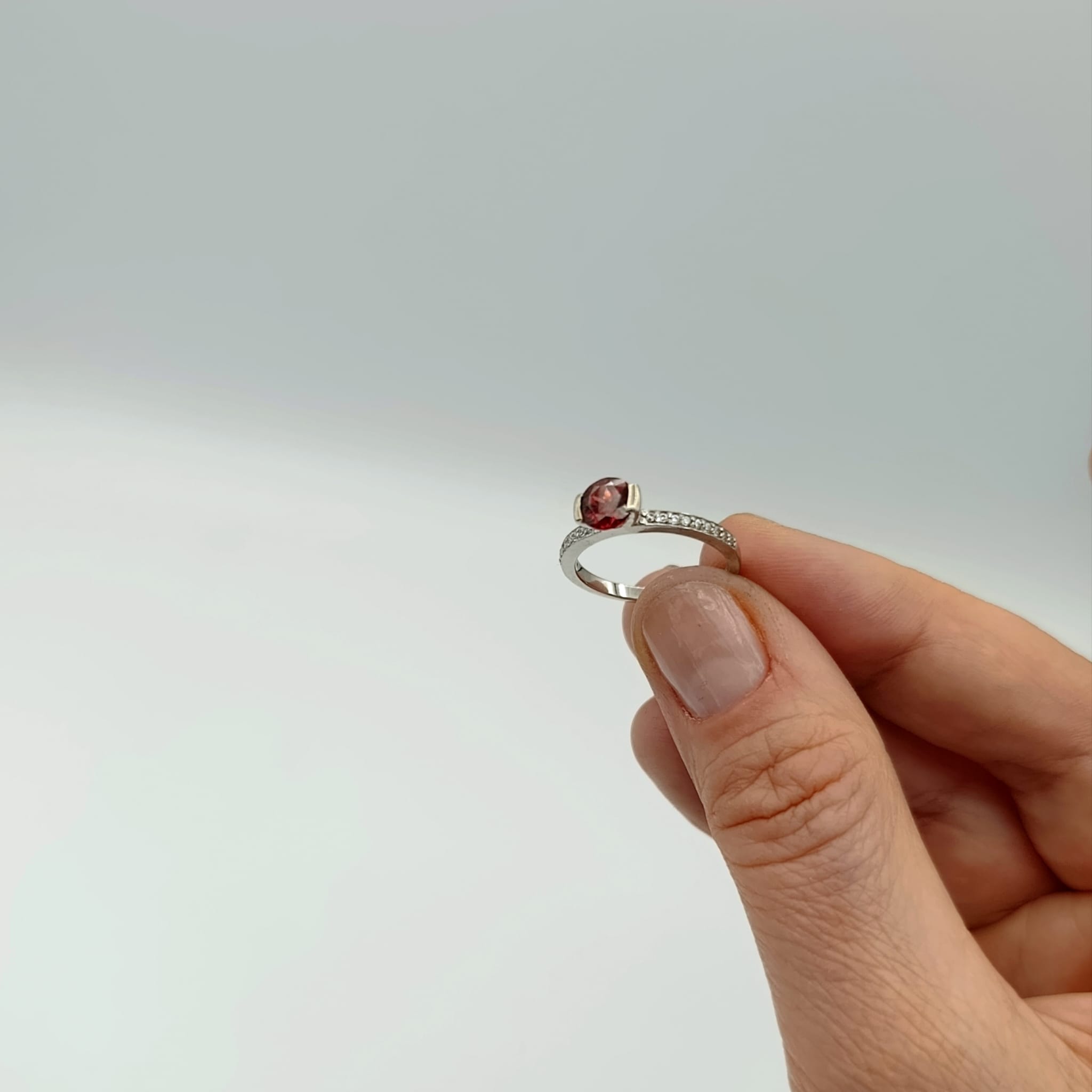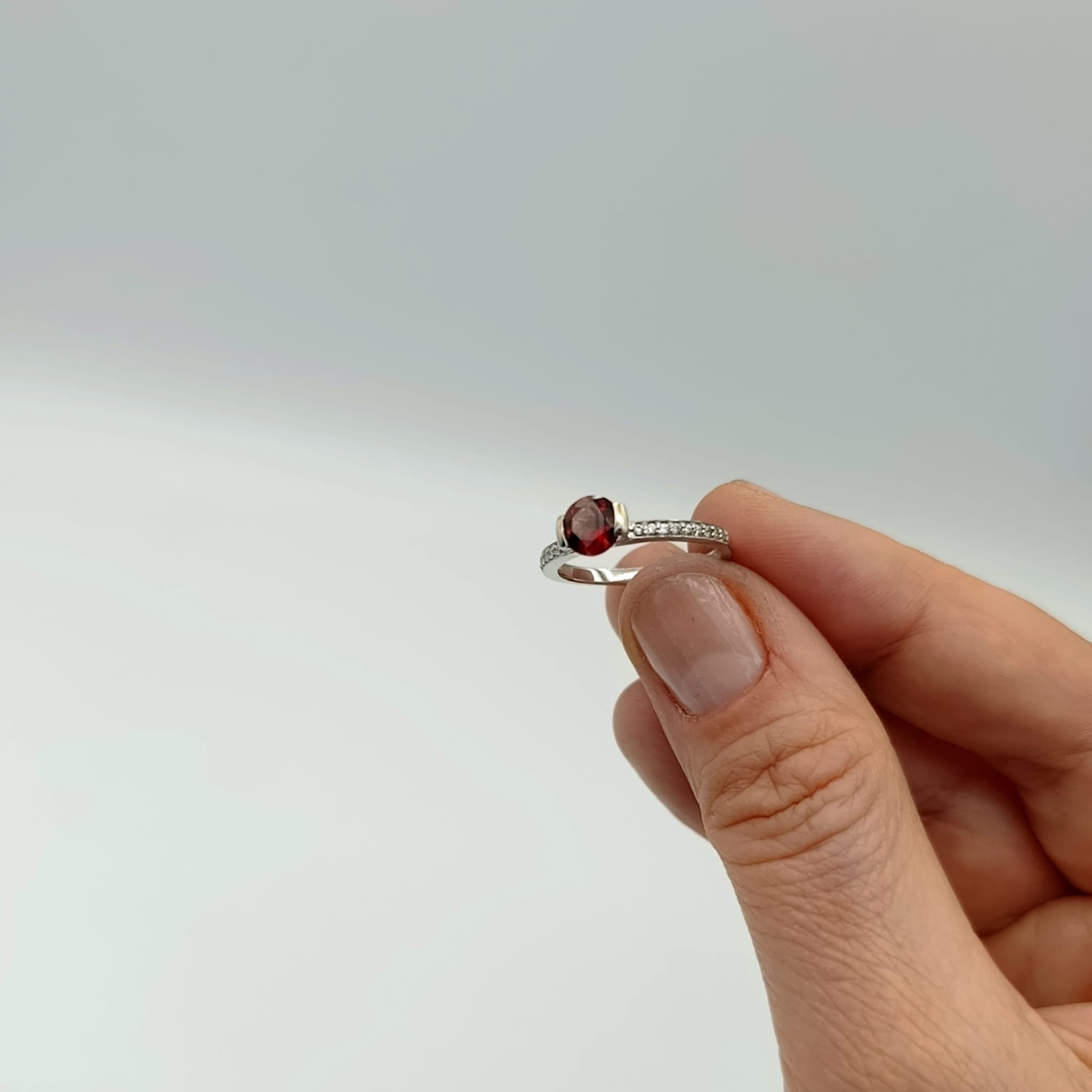 Nasza biżuteria to jednak nie tylko kwintesencja piękna, ale i najwyższej jakości. Dlatego srebro, z którego wykonany jest ten pierścionek z granatem poddaliśmy rodowaniu. Zabieg ten zapobiega ciemnieniu i żółknięciu srebra oraz nadaje mu szlachetnego odcienia. Lekko utwardza także kruszec, dzięki czemu staje się on bardziej odporny na uszkodzenia.