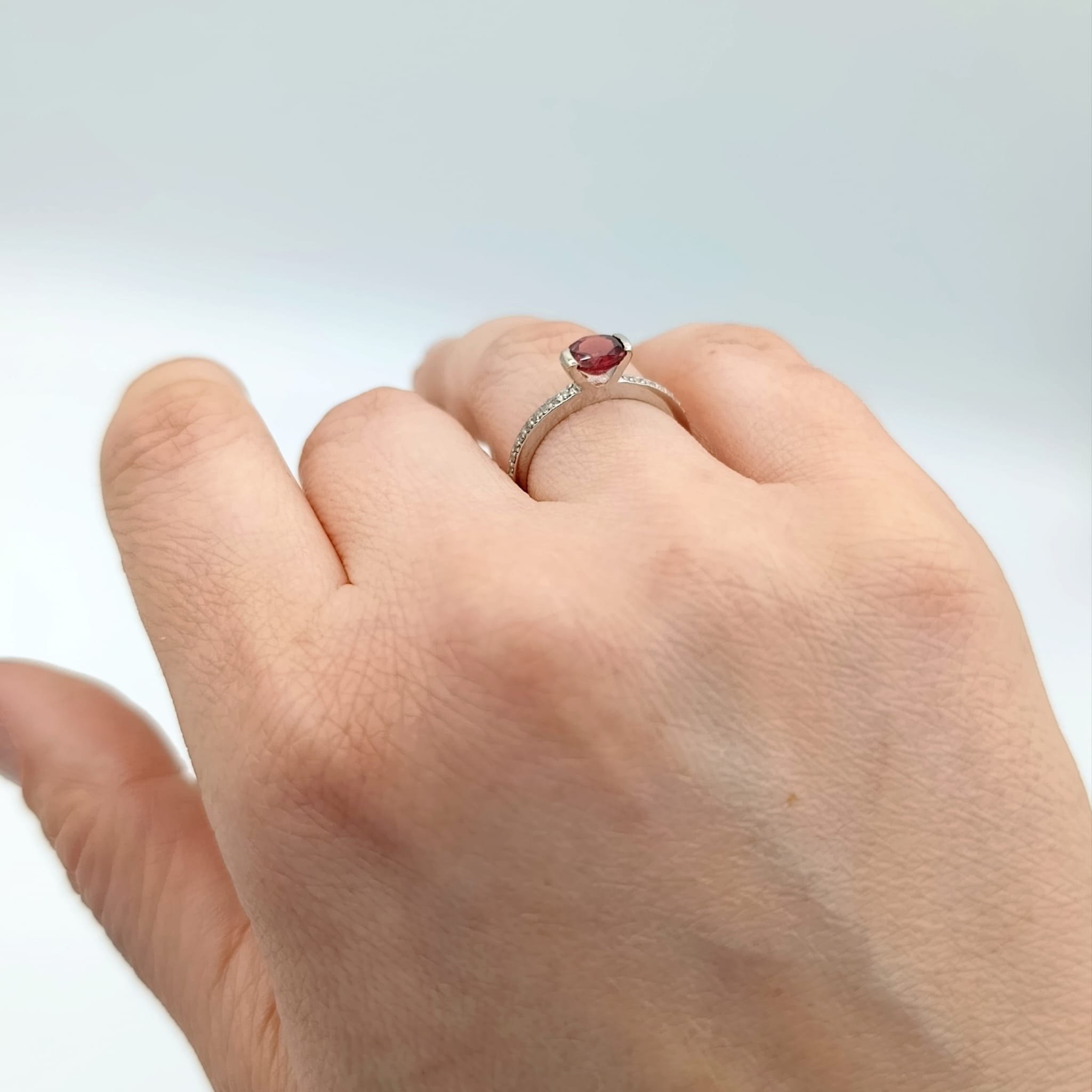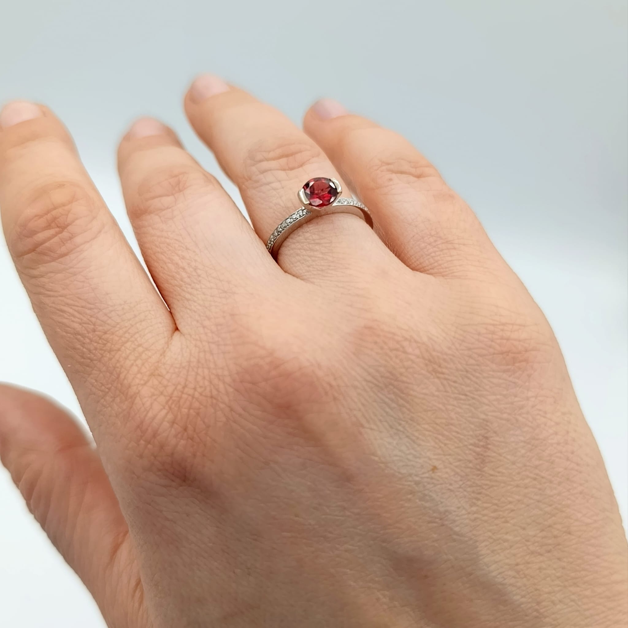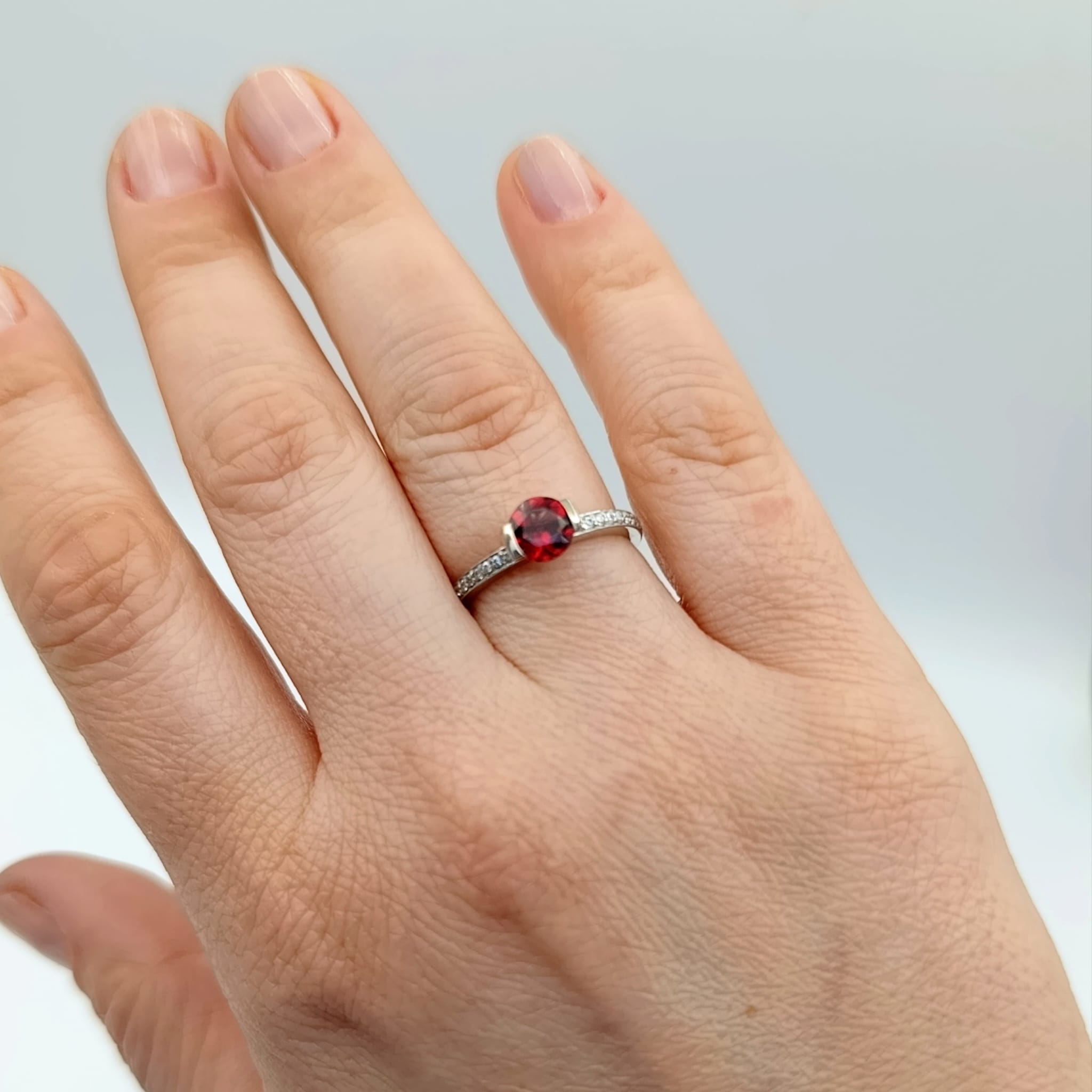 Nasza biżuteria to jednak nie tylko kwintesencja piękna, ale i najwyższej jakości. Dlatego srebro, z którego wykonany jest ten pierścionek z granatem poddaliśmy rodowaniu. Zabieg ten zapobiega ciemnieniu i żółknięciu srebra oraz nadaje mu szlachetnego odcienia. Lekko utwardza także kruszec, dzięki czemu staje się on bardziej odporny na uszkodzenia.